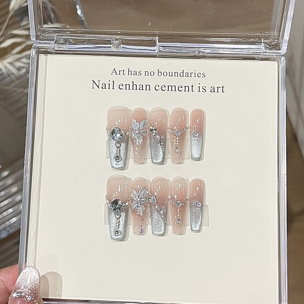 【ミントココア】春夏超輝きスモークブルーキャットアイ 精緻オパールエンボス ドリル付け爪