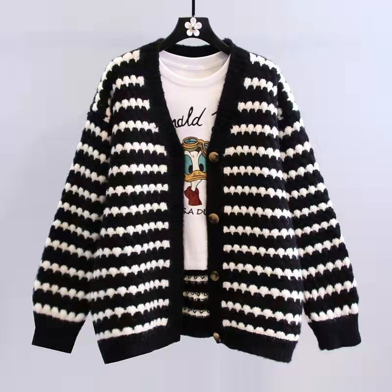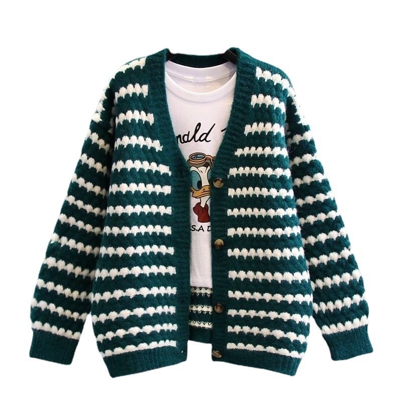 秋 通勤 オフィス ニット ボーダー柄 トップス トップス カーディガン 羽織り レディース ゆったり Vネック 長袖 カジュアル 仕事 冬 セーター