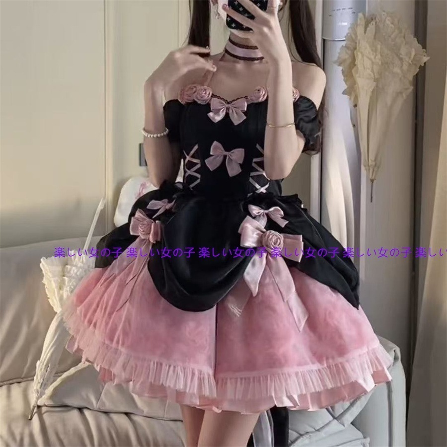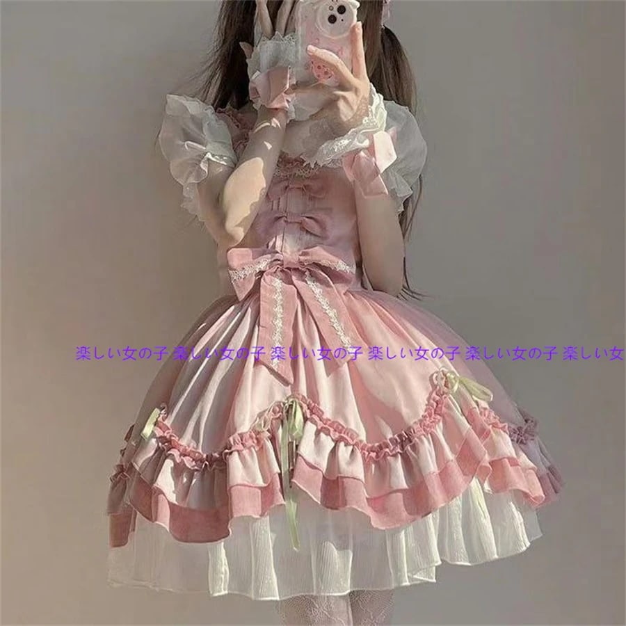 Q10人気新品!のかわいいロリータワンピース二次元コスプレドレスかわいいロリーワンピース+リボンのモップスーツ学園祭文化祭