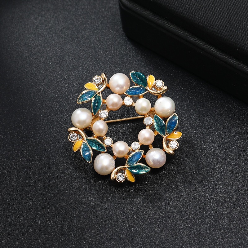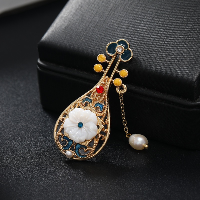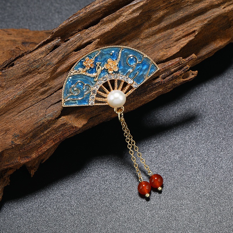 レトロ風の胸ピン彩色扇子の胸花パールビーズ合金のネクタイピンピン女性の旗袍アクセサリー真珠雅致な国風