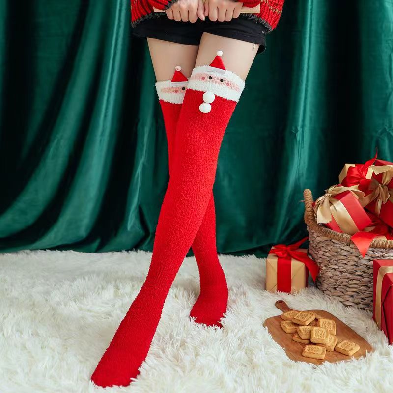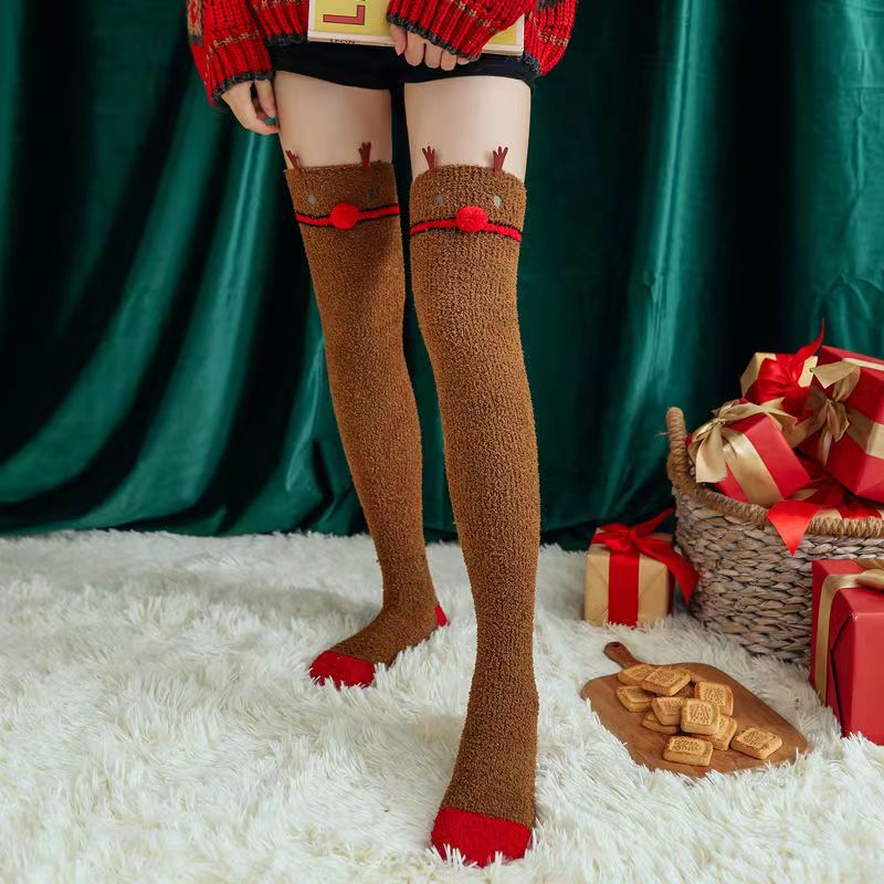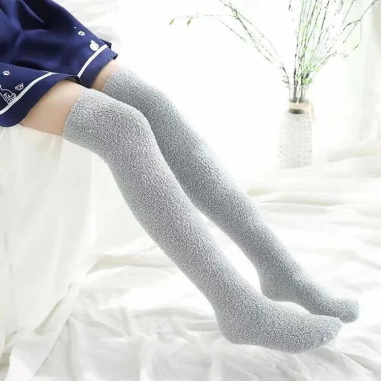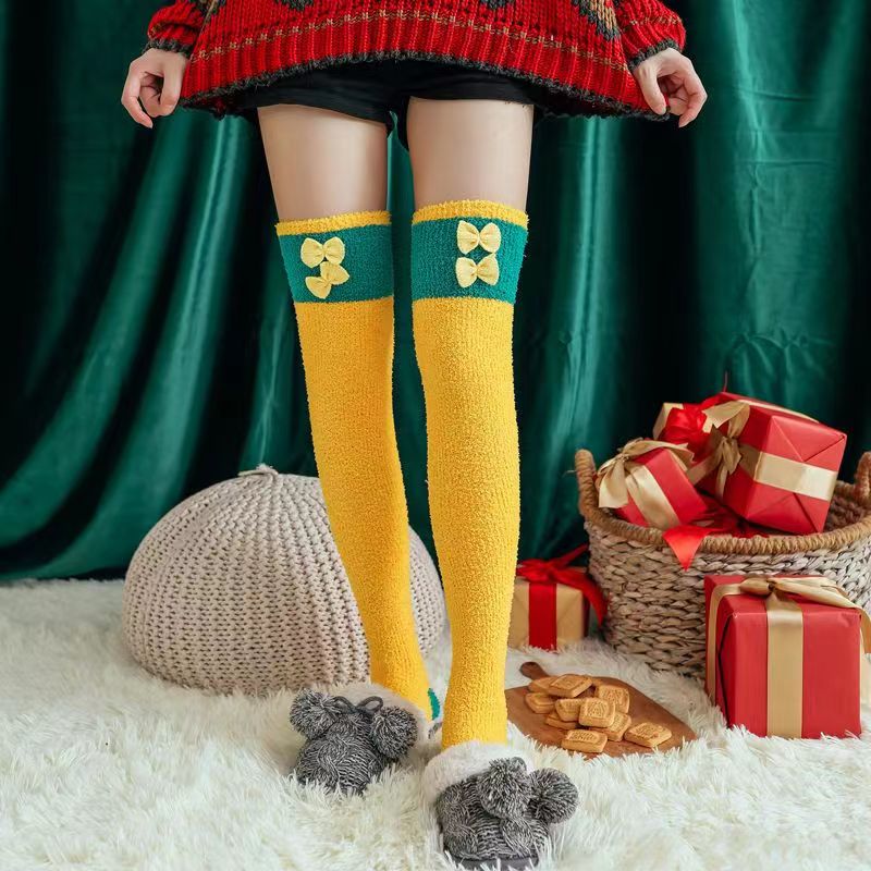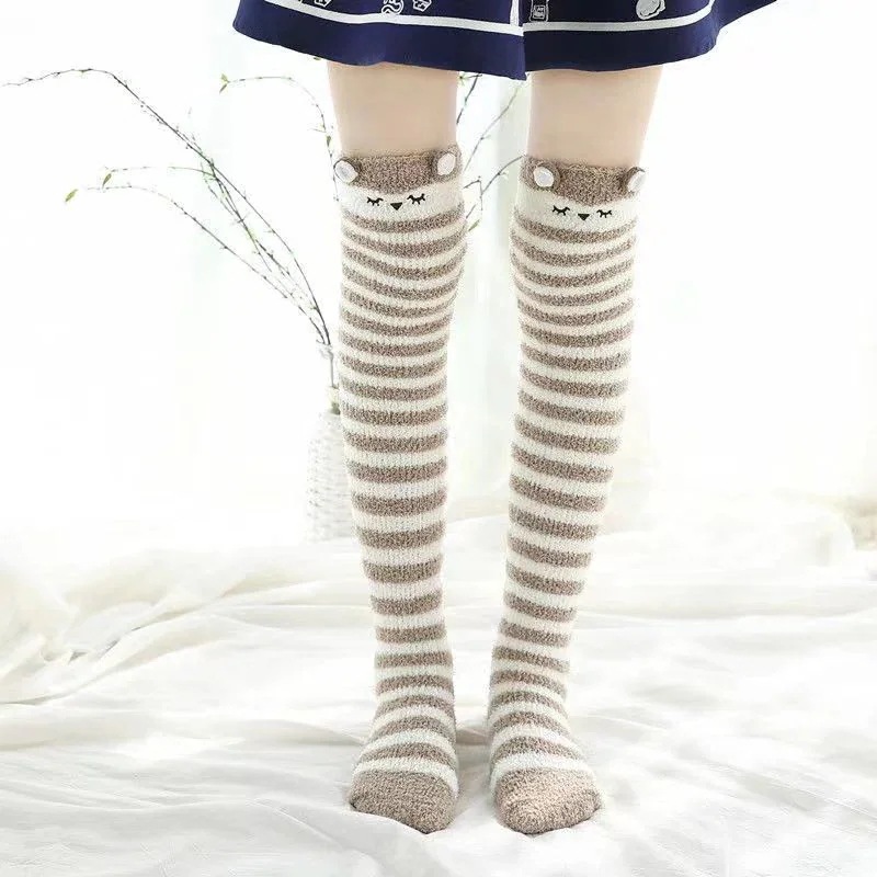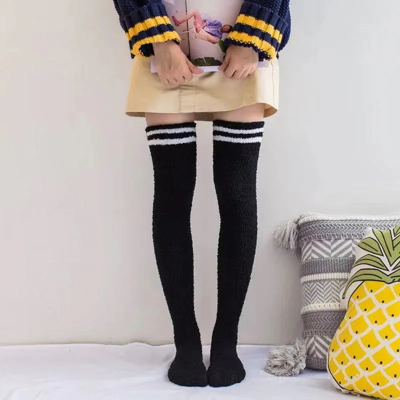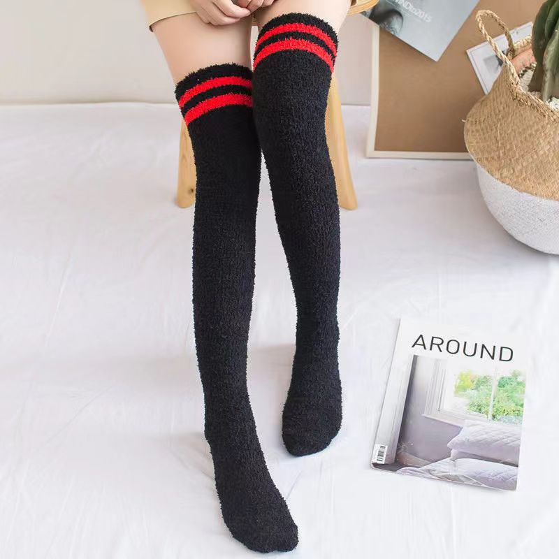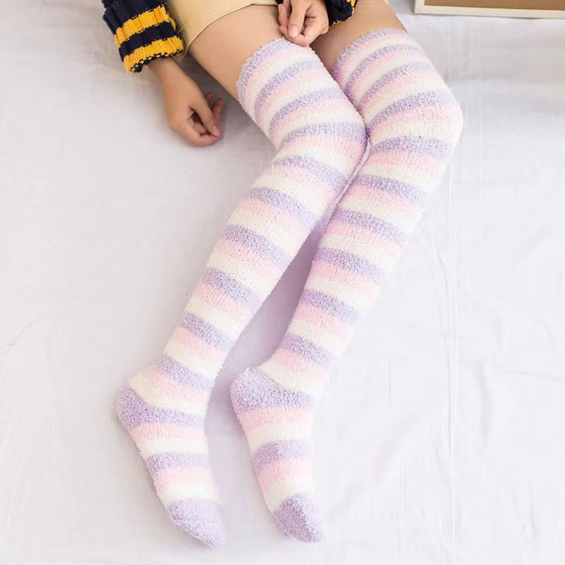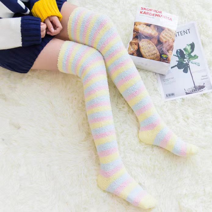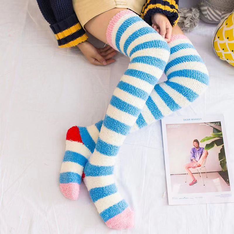全14色 ハイソックス もこもこ ふわふわ ニーハイソックス ソックス レディース ボーダー柄