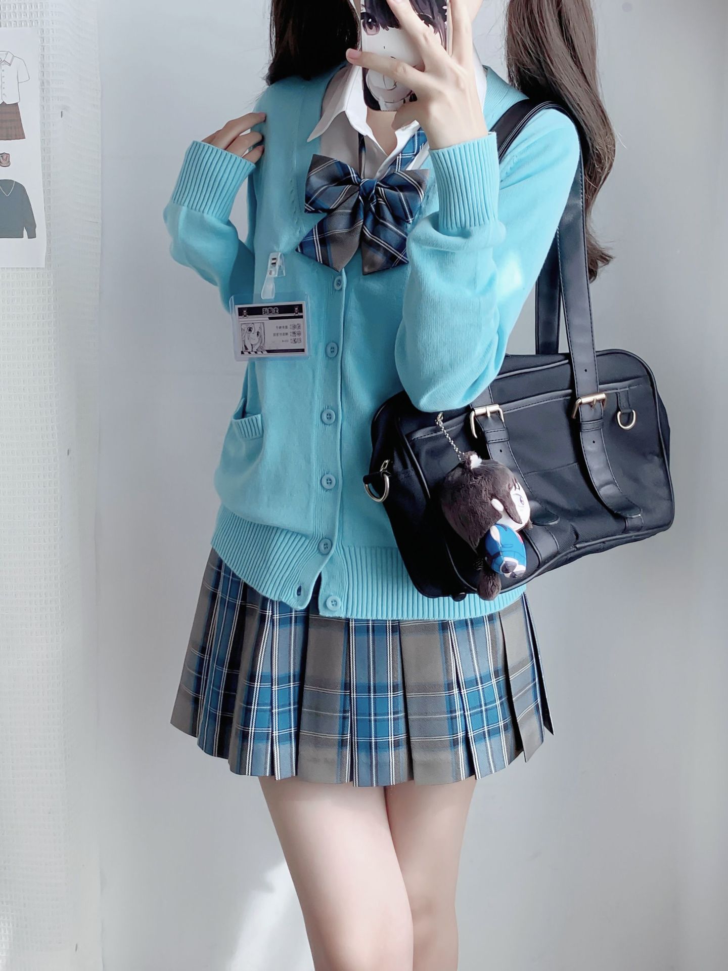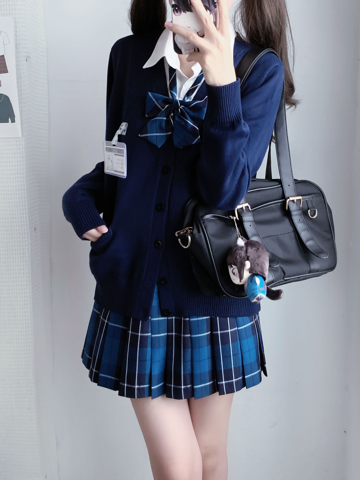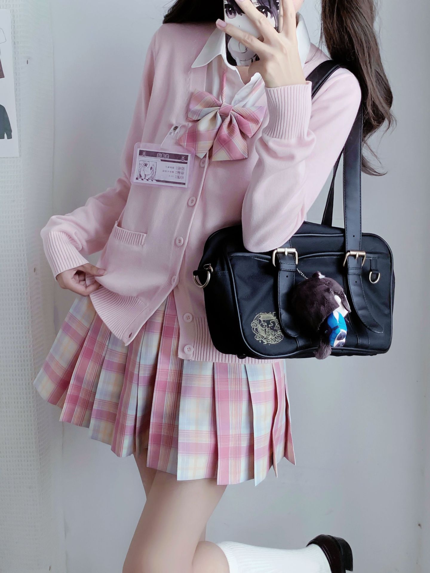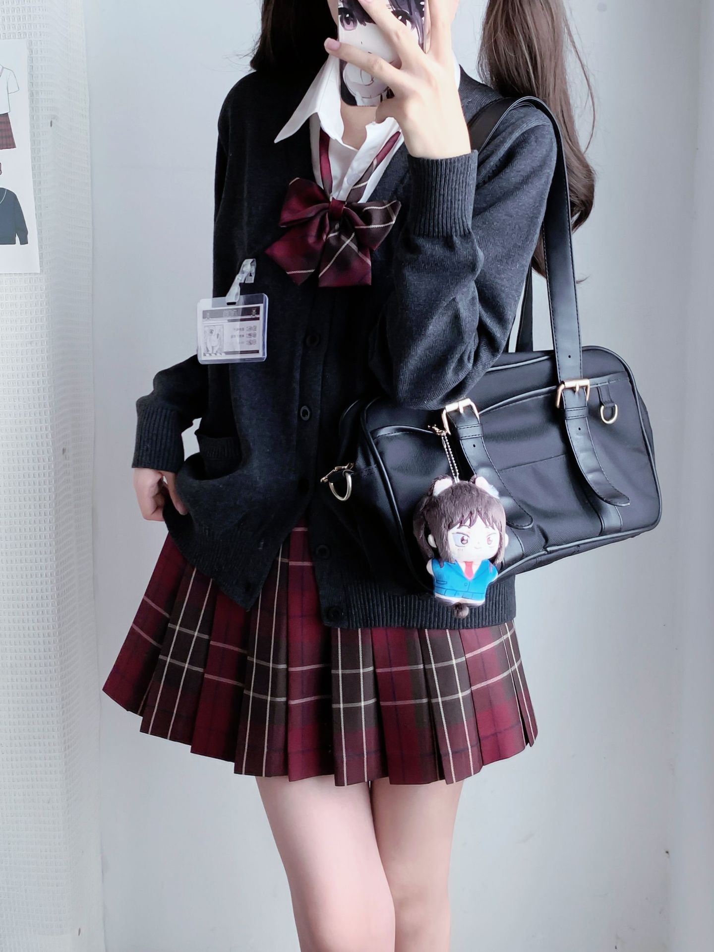 JK 甘め カレッジ風 コーデ 長袖 カーディガン チェック柄 スカート 秋冬 学校用品 センス 重ね着 インナーウェア 和風 スーツ