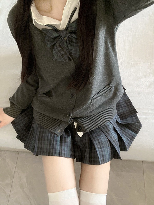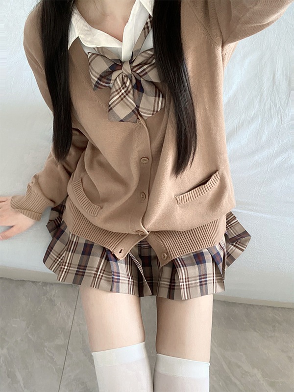 JK制服 秋冬スーツ セーター カーディガン コート チェック柄スカート シャツ 長袖 オールマッチ 学校用品 女性