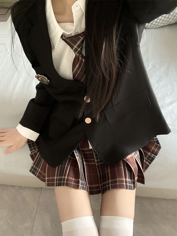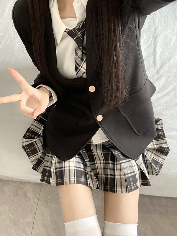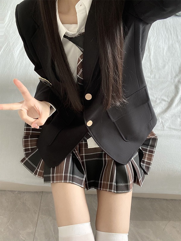 JK制服レディーススーツフルスーツジャケットシャツチェック柄スカート日本の大学スタイルのスーツ