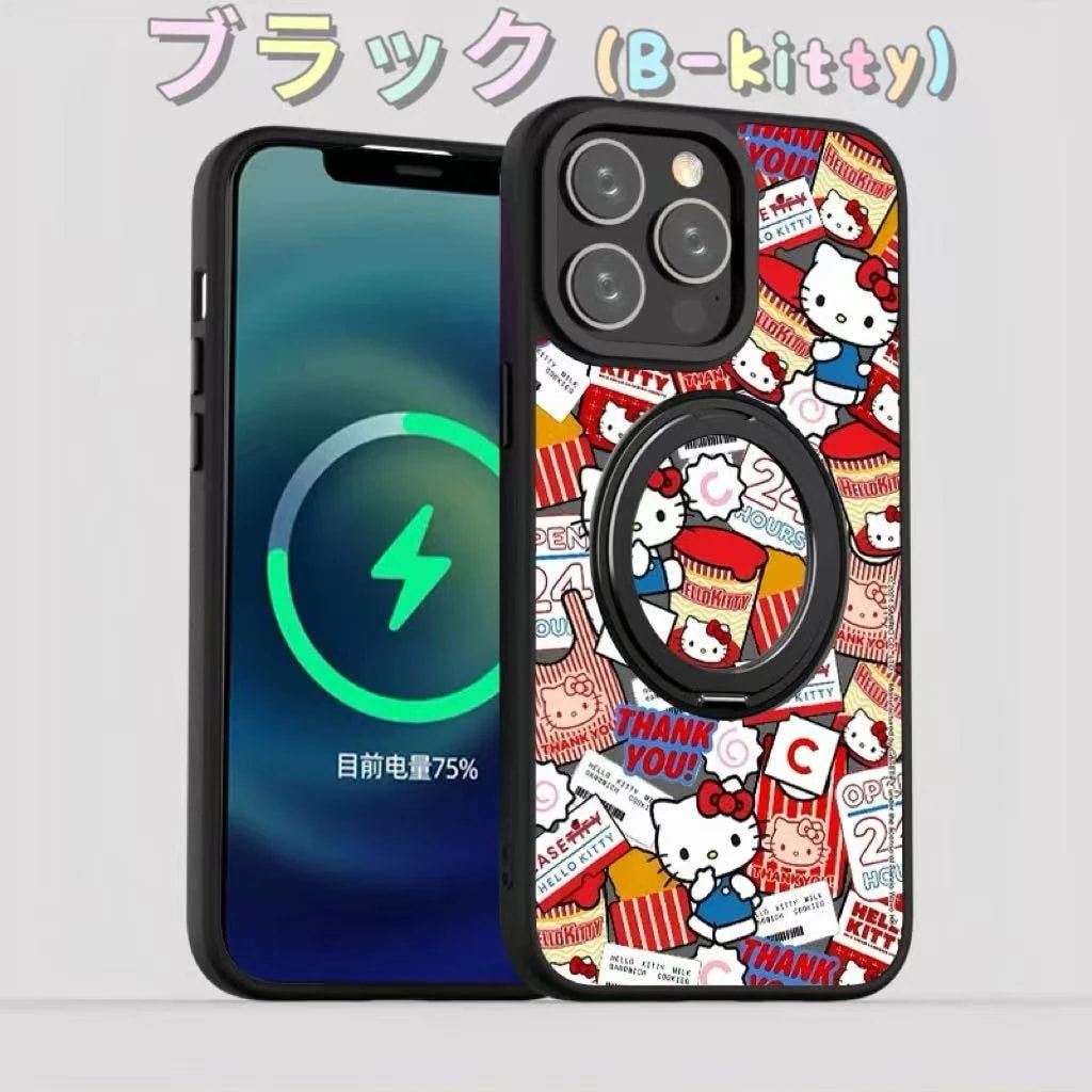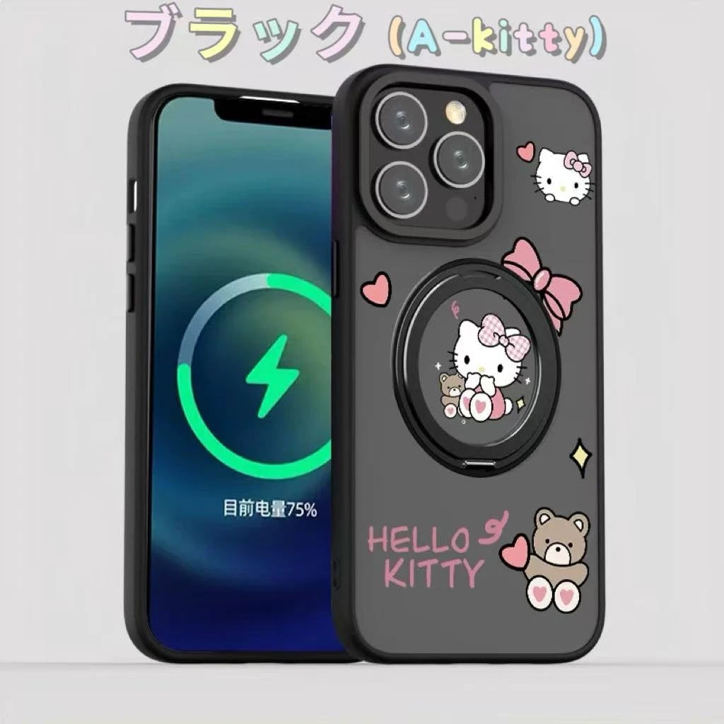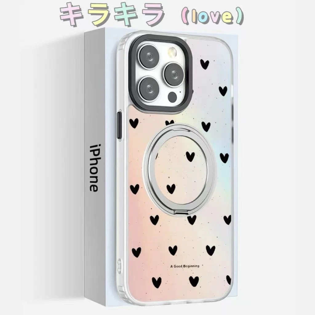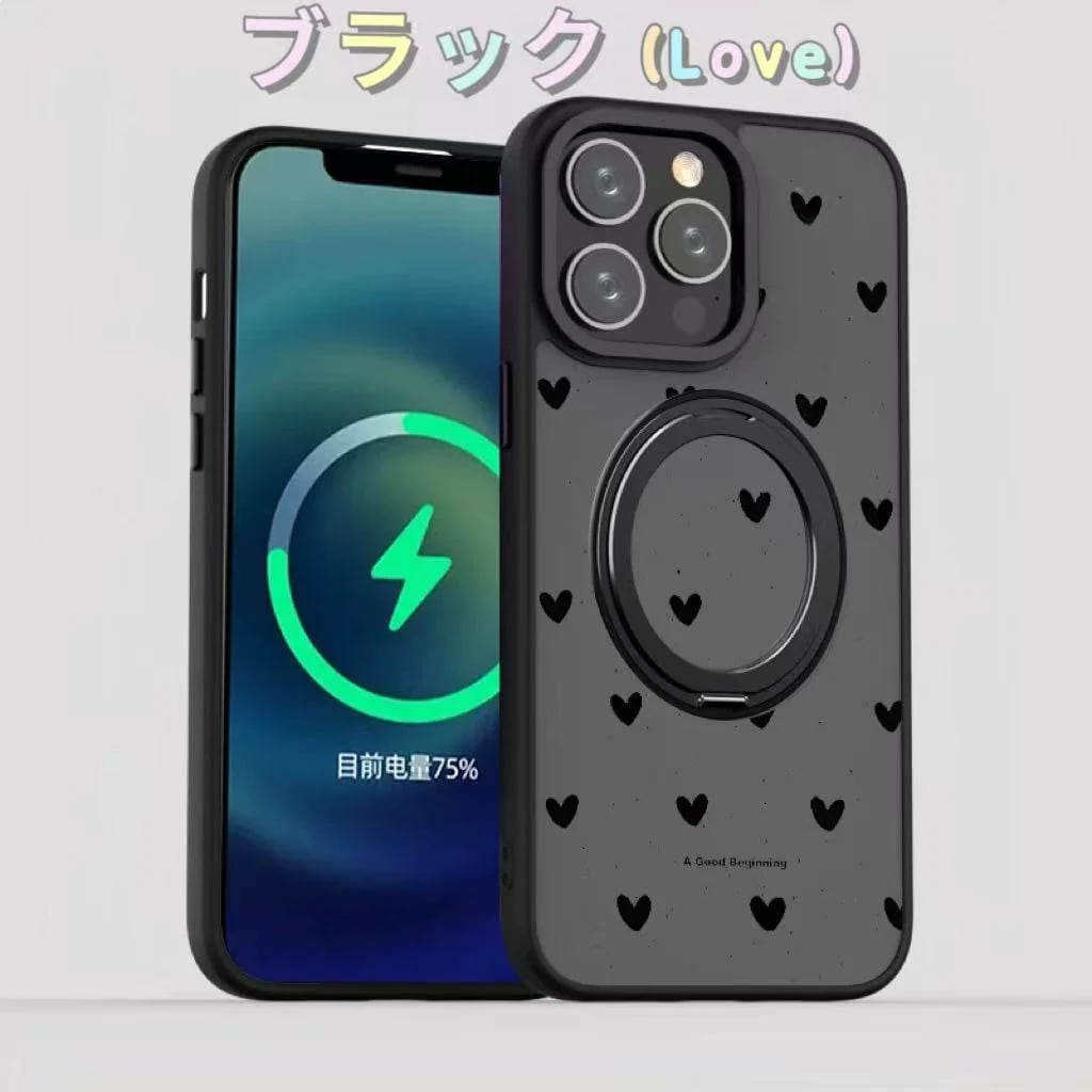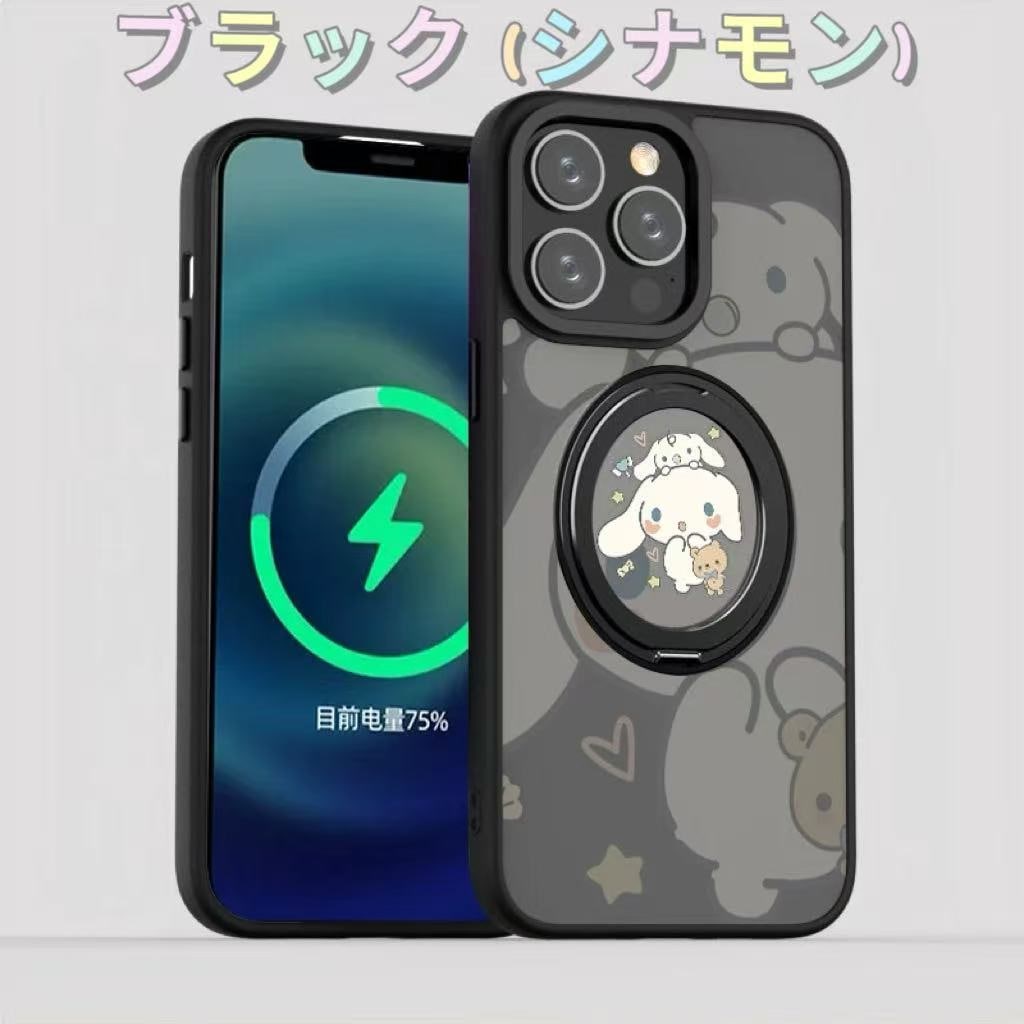 サンリオ【Magsafe対応】リング付きiPhone17 iPhone16e ケース スマフォケース マグセーフ 折り畳み式 開閉式 スタンド スマフォスタンド ハート ドット ブラック 透明
