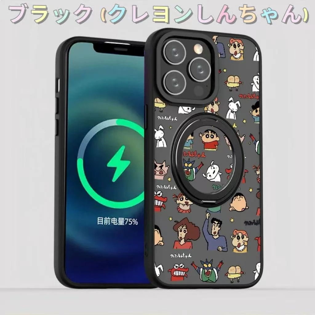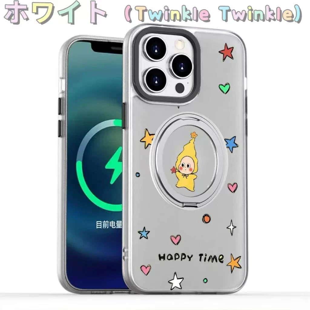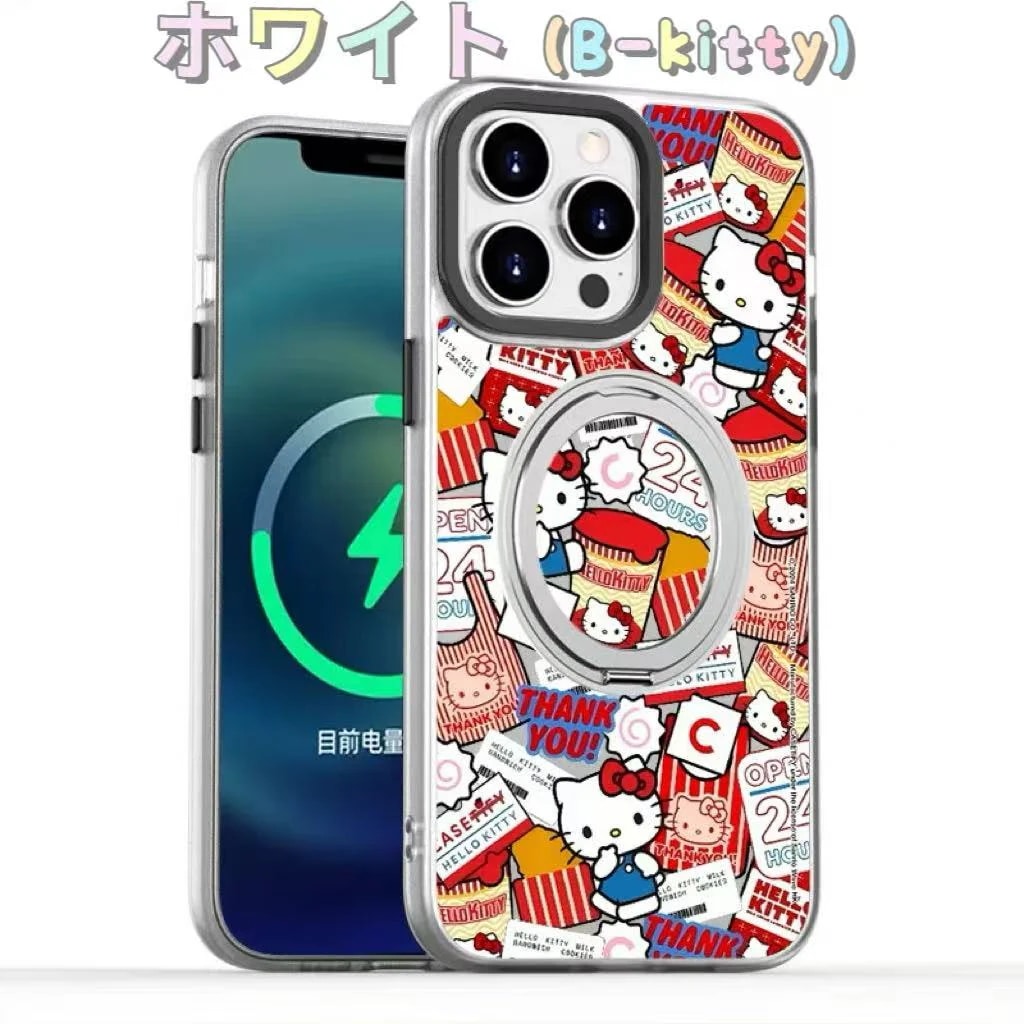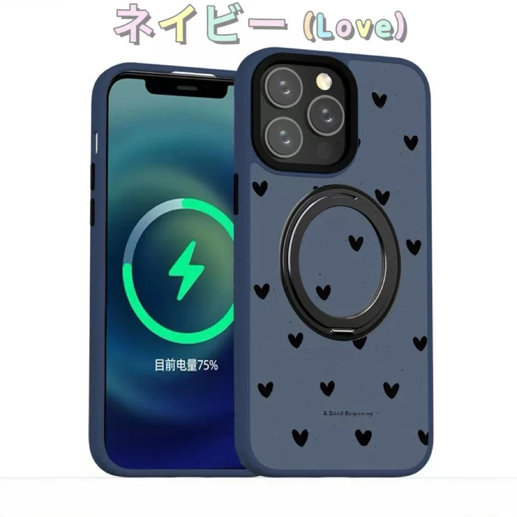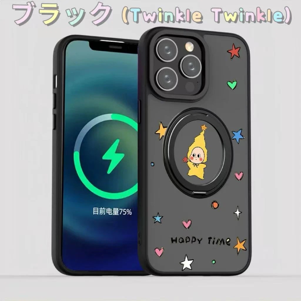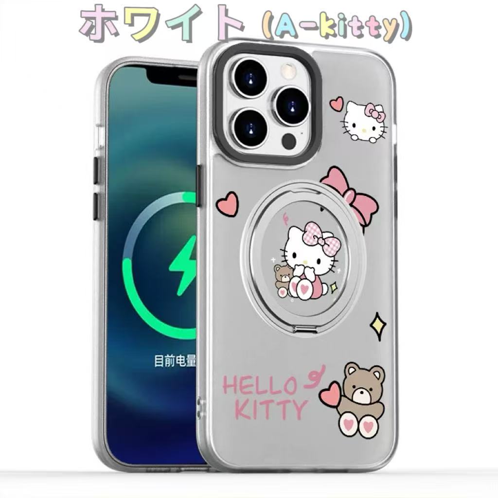 サンリオ【Magsafe対応】リング付きiPhone17 iPhone16e ケース スマフォケース マグセーフ 折り畳み式 開閉式 スタンド スマフォスタンド ハート ドット ブラック 透明