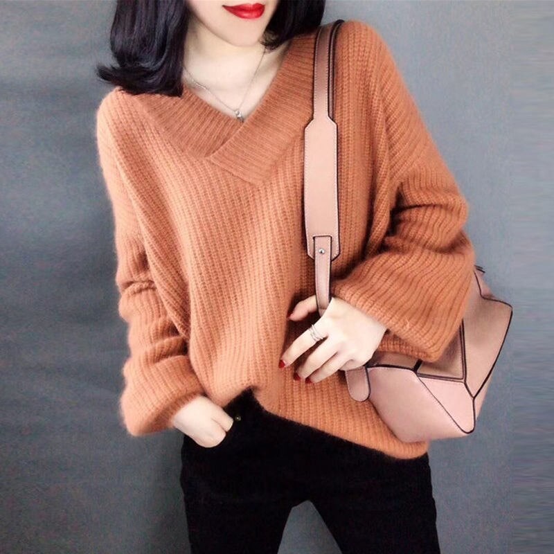 暖かいカシミアタッチニットカーディガンベーシックニットニットVネックニット