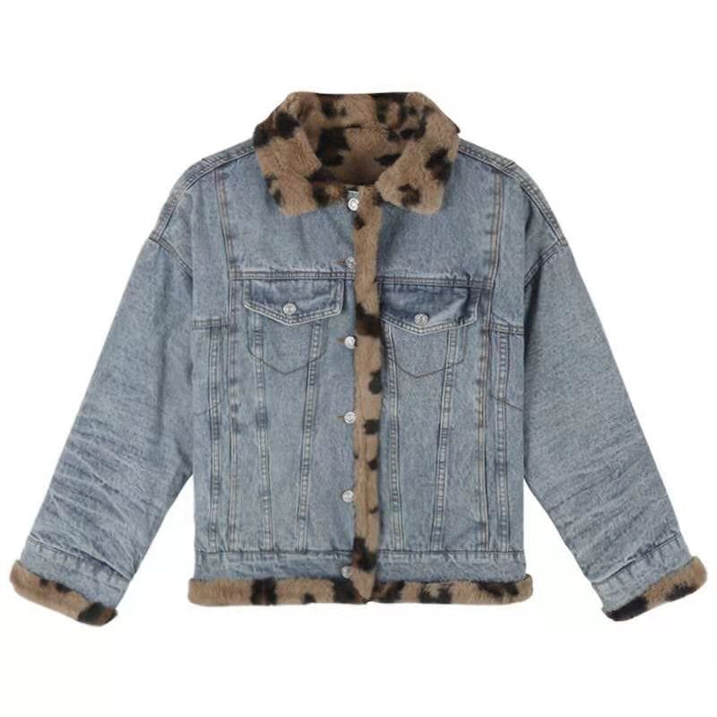 リバーシブルで着れるヒョウ柄ファーデニムジャケット ドッキング 異素材 デニムジャケット ファージャ1339