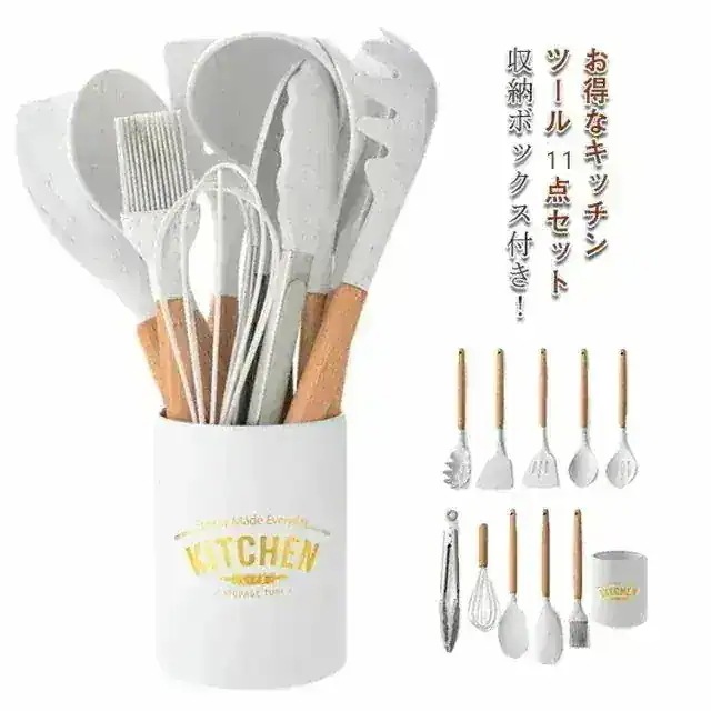 11点セット キッチンツール シリコン製 キッチンツールセット スチール収納容器付き キッチン用品 安全素材 台所用品 耐熱シリコ 調理料理製菓器具 クッキング用品 フライ返しスプーンおたま ト7