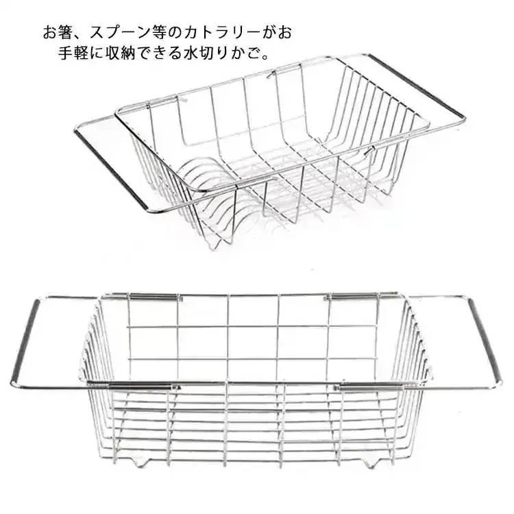 新作 水切りかご 水切りラック 伸縮可能 ステンレス 大容量 食器収納 水切り 皿収納 キッチンラック 食器かご 台所用 キッチン用品 省スペース 滑り止め 収納用品