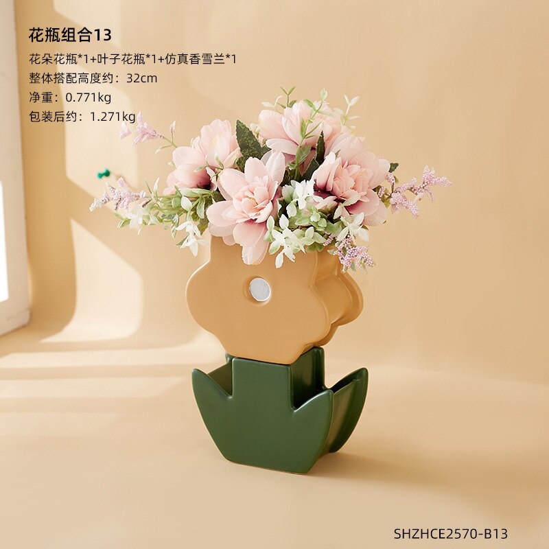 インスタイルアートセラミッククリエイティブフラワー花瓶ミルクティーショップキャビネット