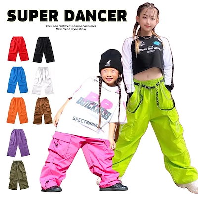 新しいダンスウェア ダンスパンツ ダンス衣装 キッズ ヒップホップ 衣装 パラシュートカーゴパンツ レッスン着 ダンスズボン ピンク 黒 オレンジ 水色 黄緑 白 赤 紫 即日発送 即納2つの方がお得