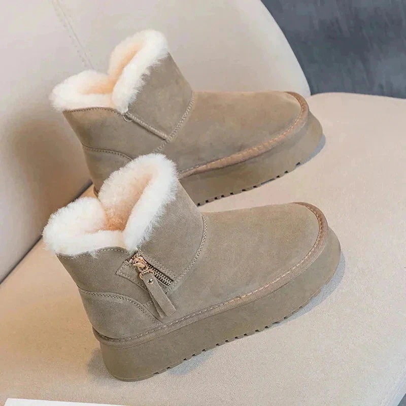 りモコモコ靴 レディース アウター 皮毛一体 厚底スノーブーツ包頭 滑り止め フラットシューズ コットンスリッパスノーブーツ