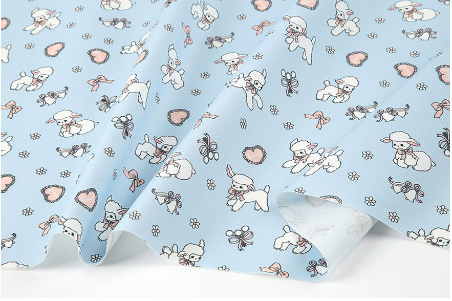 韓国生地 動物柄 リボンと子羊 可愛い羊柄 コットン100% シーチング Ribbon Sheep Fabric 45cm x 110cm