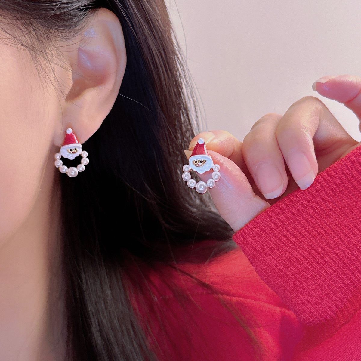 秋冬 新しい サンタクロース パール ピアス かわいい 高級 クリスマス レディース イヤリング