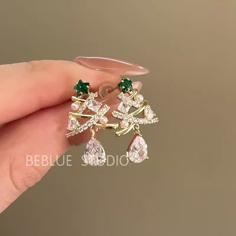 レディース 秋冬 デリケート 高級感 クリスマスツリー ジルコン イヤリング 2025 新しい 独特 デザインし ピアス