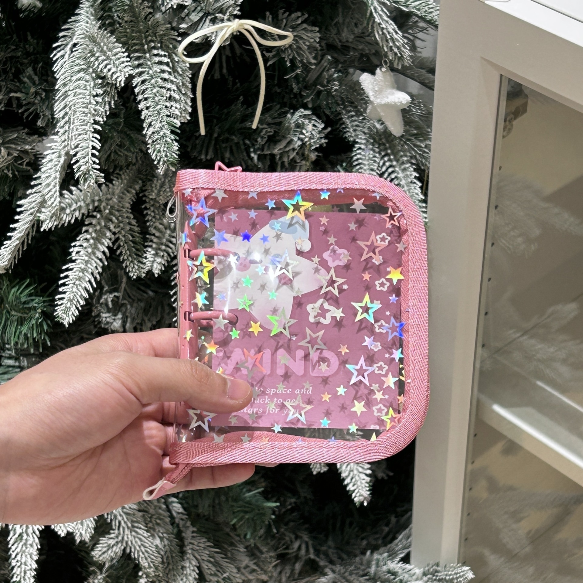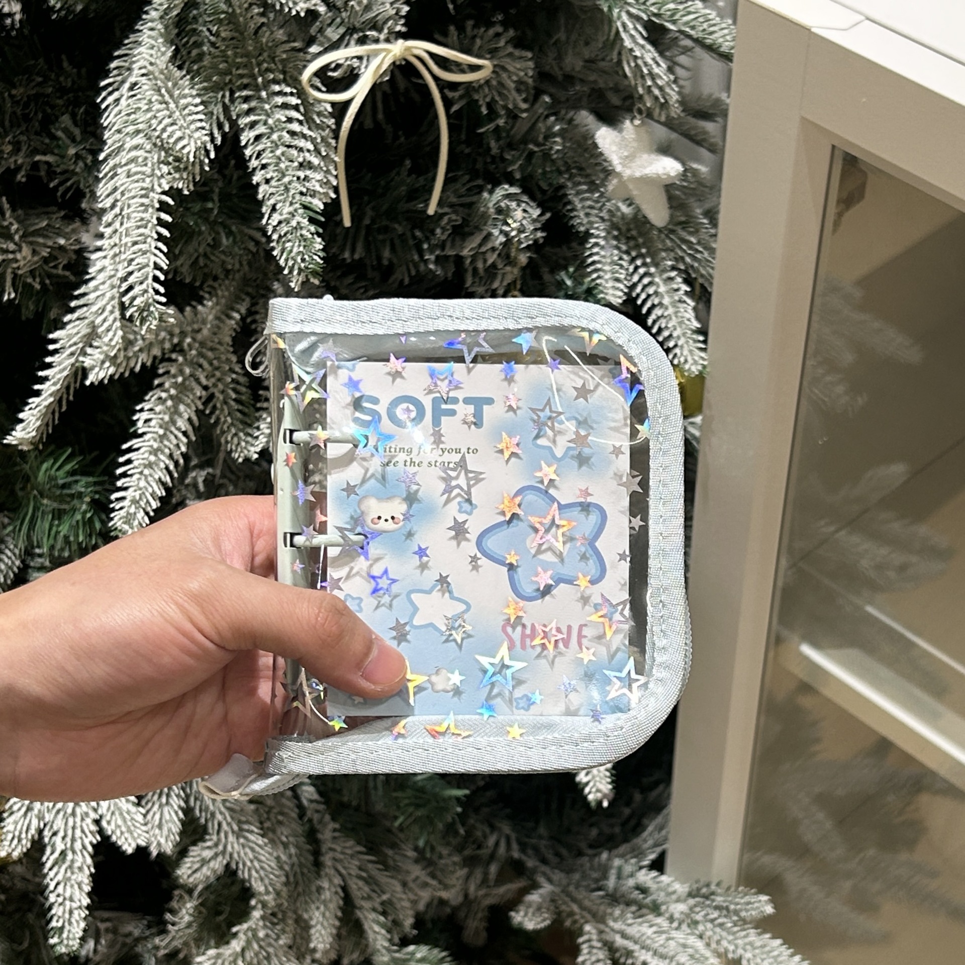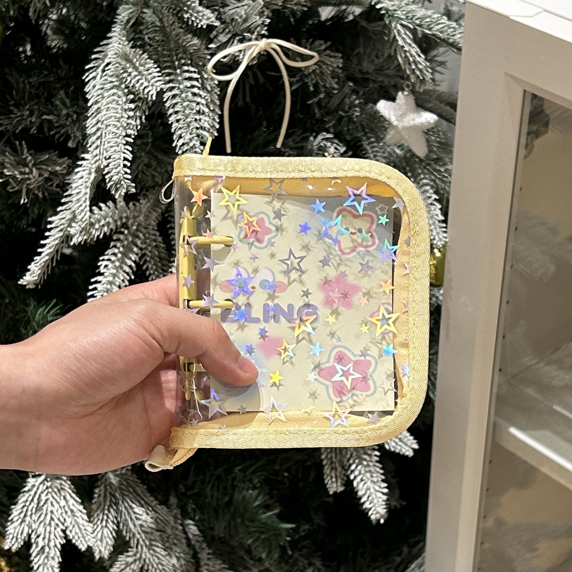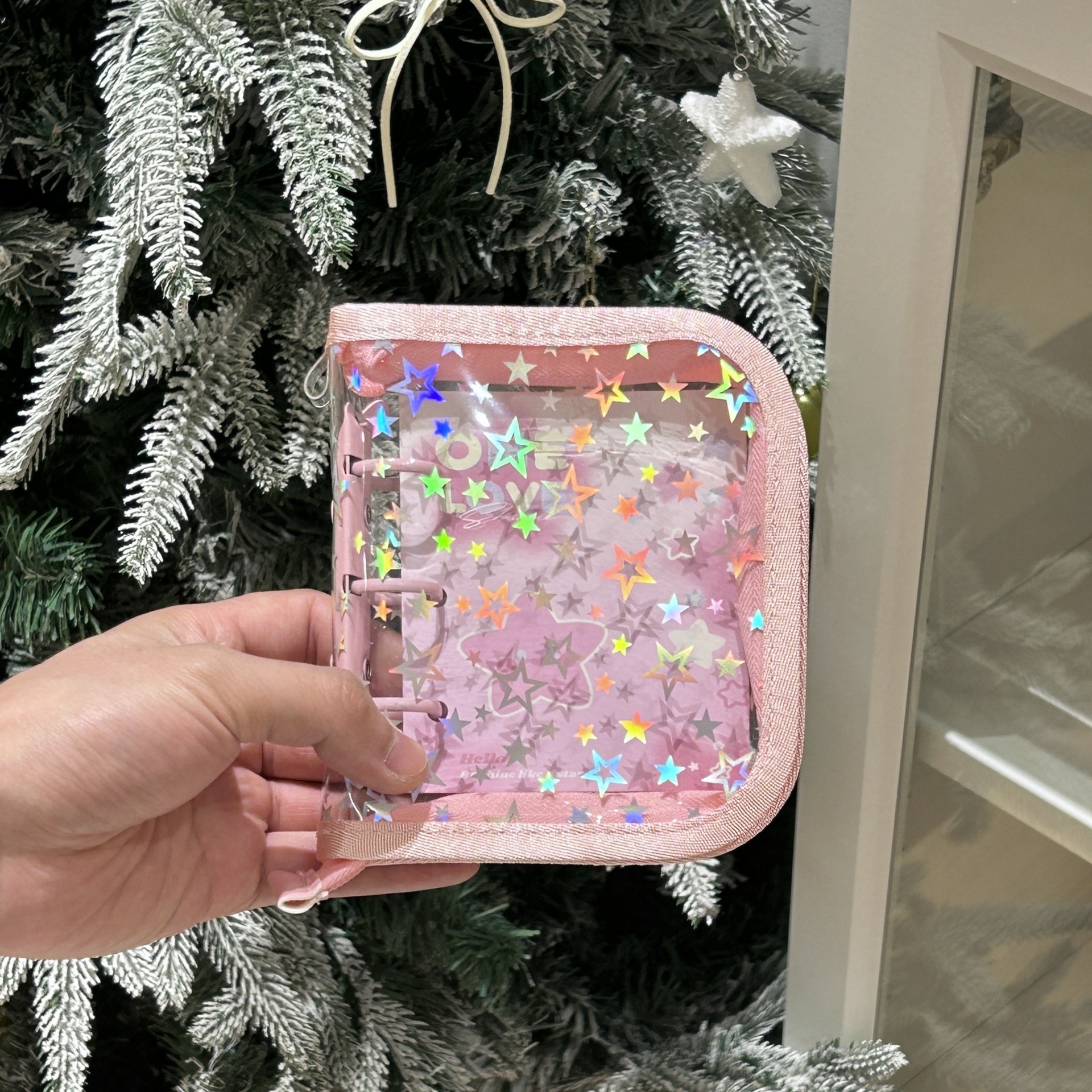 【SNS大人気】リフィル式ノート A8 スター 6 ホール PVC ジッパー 縁取り 手帳 アルバム トレカ 収納