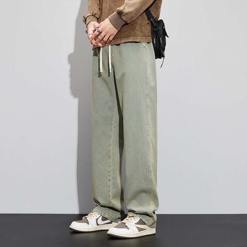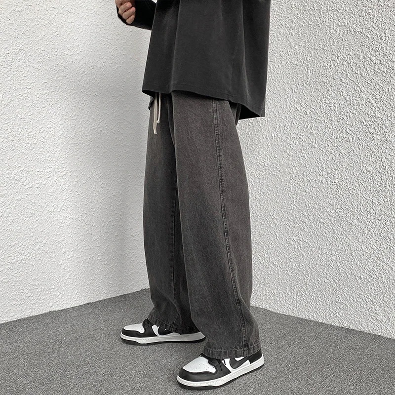 メンズジーンズ 春・秋用 ゆったりストレートアメリカンハイストリートブラックワイドパンツ 秋冬カジュアルロングパンツ