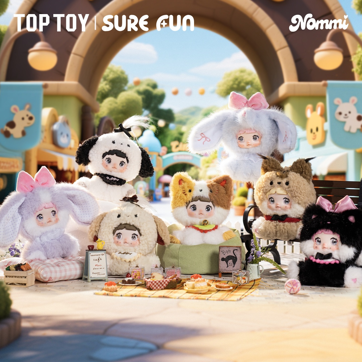 TOPTOYTOP TOY Nommi 糯米儿 坐坐动物园シリーズ 芋泥小兔 / 草莓丢丢 / 棉花团团 / 拿铁汪汪 / 栗子可可 / 招财喵団団 中国限定 ぬいぐるみ 盲盒 日本未発売 フィギュア