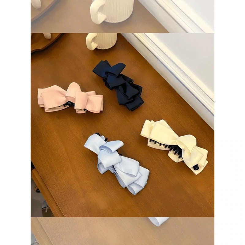 10個セット韓国風デザイン感サテン多層リボンバナナクリップ女性用甘美な後頭部高ポニーテール固定ヘアクリップヘアアクセサリー