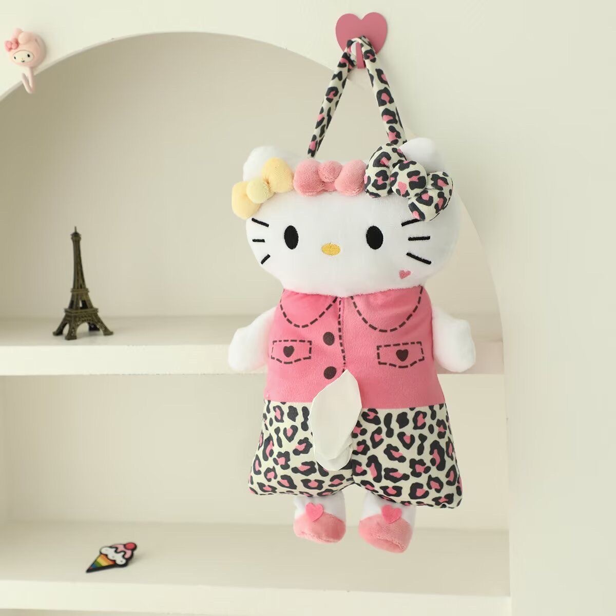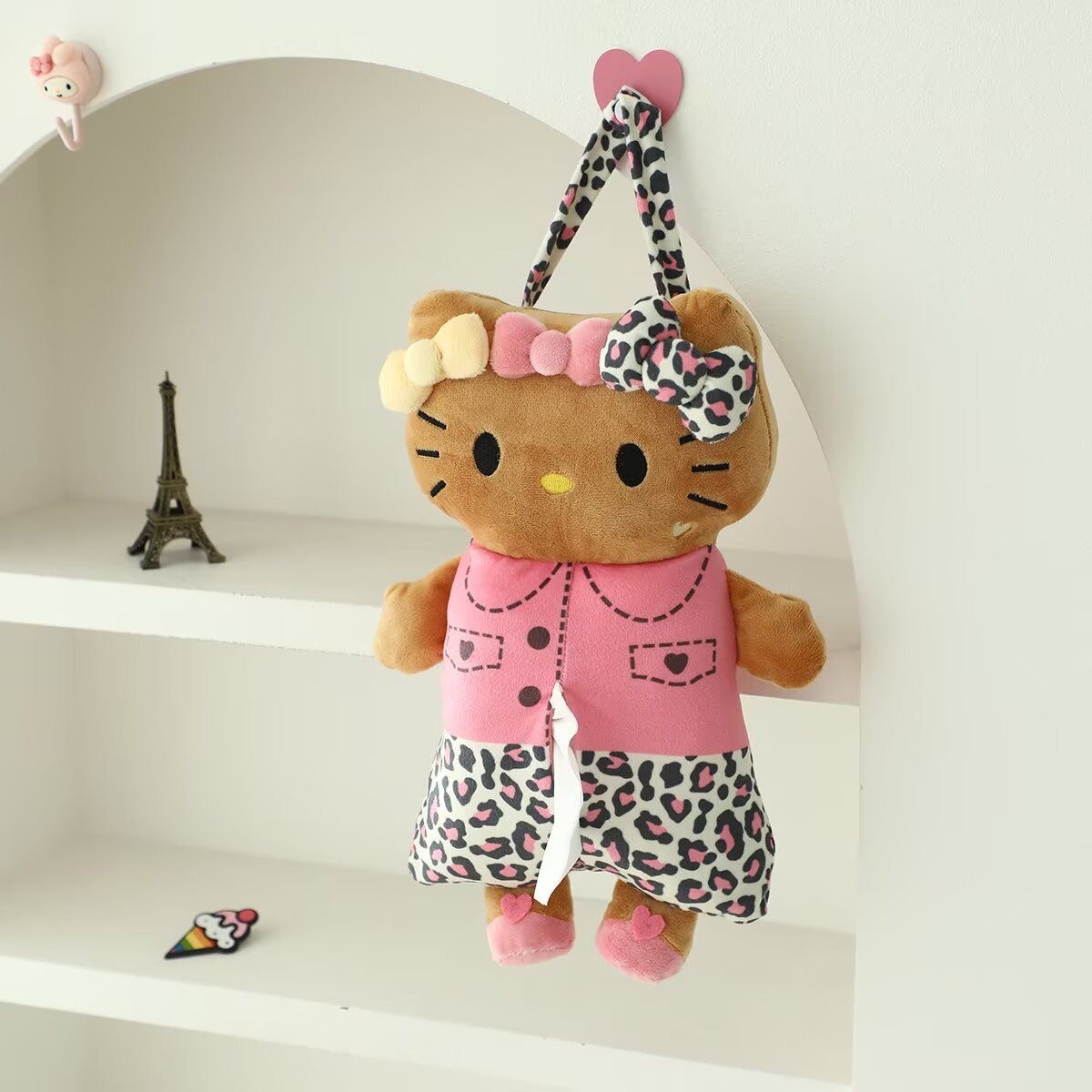 人気ハローキティ レオパード柄ペーパーホルダー車載・室内両用掛け式 白 / 茶色 2 色選べる 可愛さ全開!大容量対応 プレゼントに超オススメな新品
