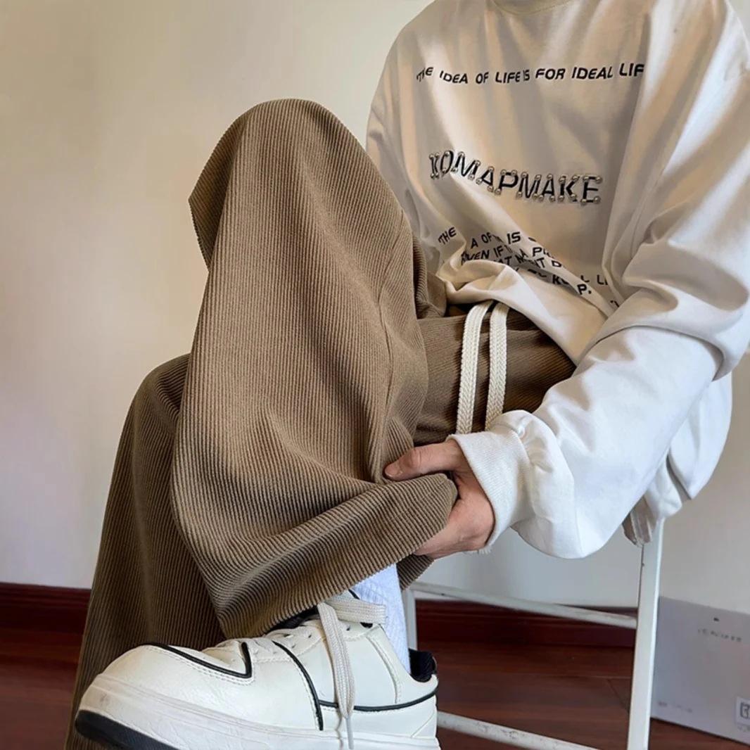 コーデュロイパンツ 男性用 秋冬 裏起毛 厚手 トレンドブランド アメリカンスタイル ヘビーウェイト カジュアルパンツ ゆったりストレート ワイドレッグ ロングパンツ
