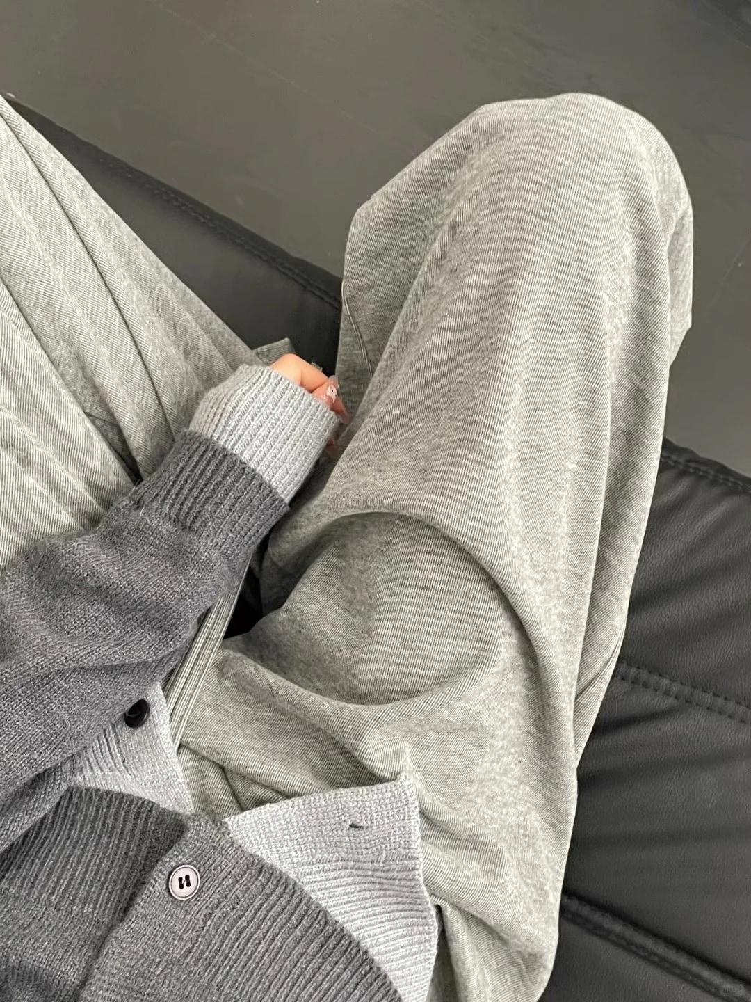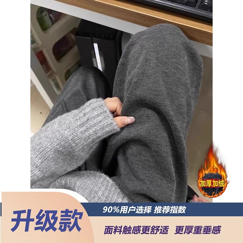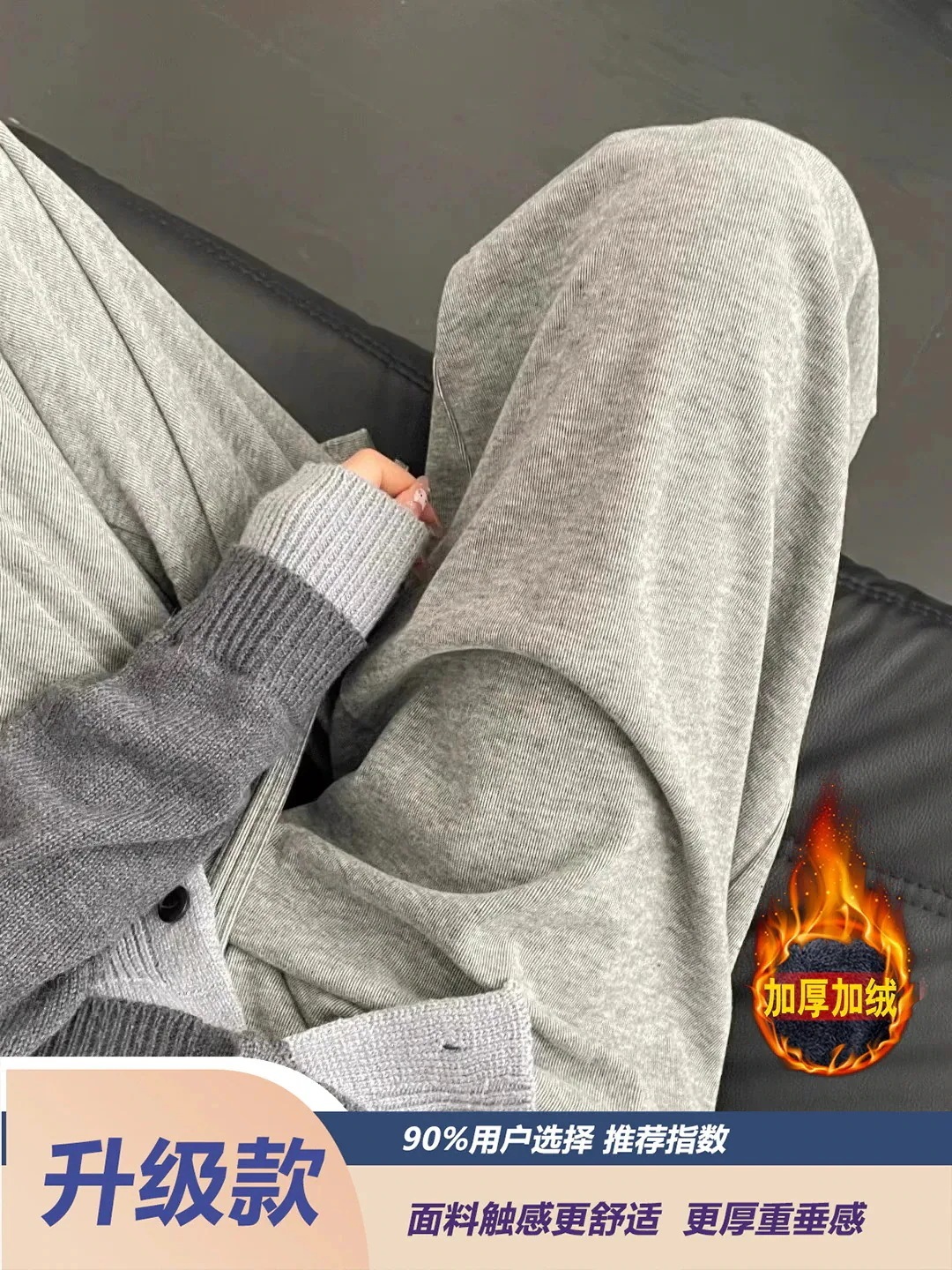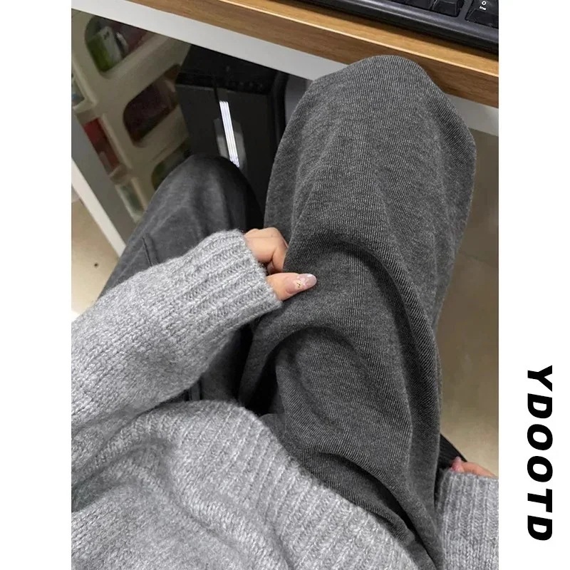 ダークグレーワイドレッグスウェットパンツ男性秋冬用 裏起毛厚手 ゆったりリラックス感 ゆったりカップルストレート米粉パンツ長ズボン