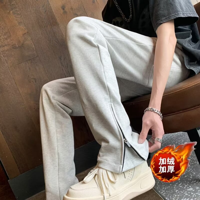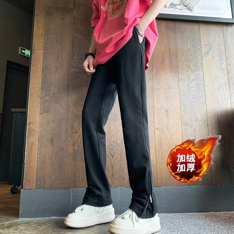 ブラックメンズスラックス春秋アメリカンハイストリートパンツ裾 ジッパーパンツトレンドブランドスリムフィットスポーツストレートパンツロングパンツ