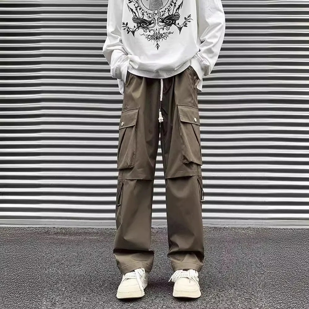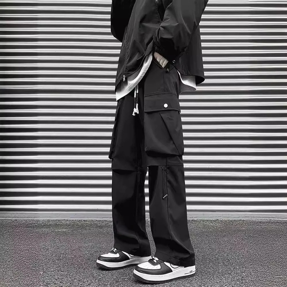 アメリカンストリートワークパンツ メンズ春秋用 トレンドアウトドア機能性トレッキングパンツ ストレートシルエット 大きめサイズ カジュアルロングパンツ