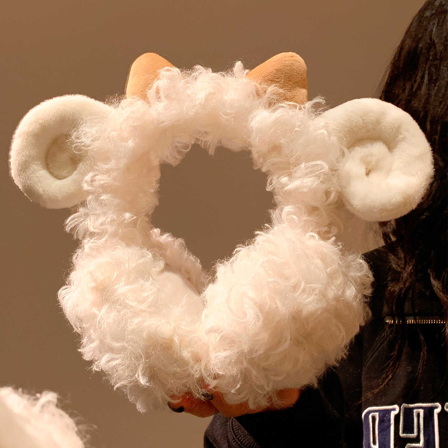 ふわふわ可愛い子羊の毛の耳当て 厚手防寒保温 サイクリング用 羊耳型耳カバー イヤーマフ
