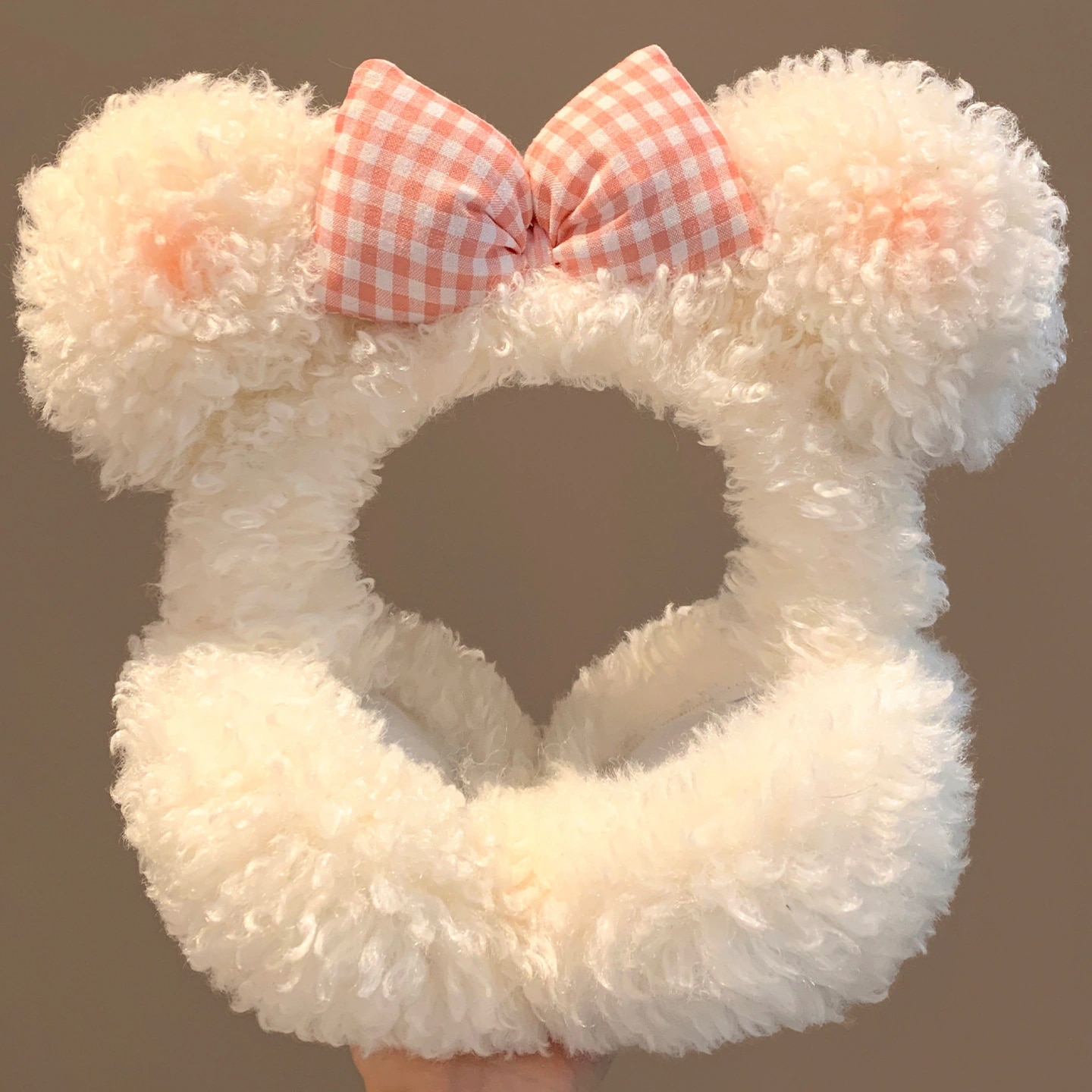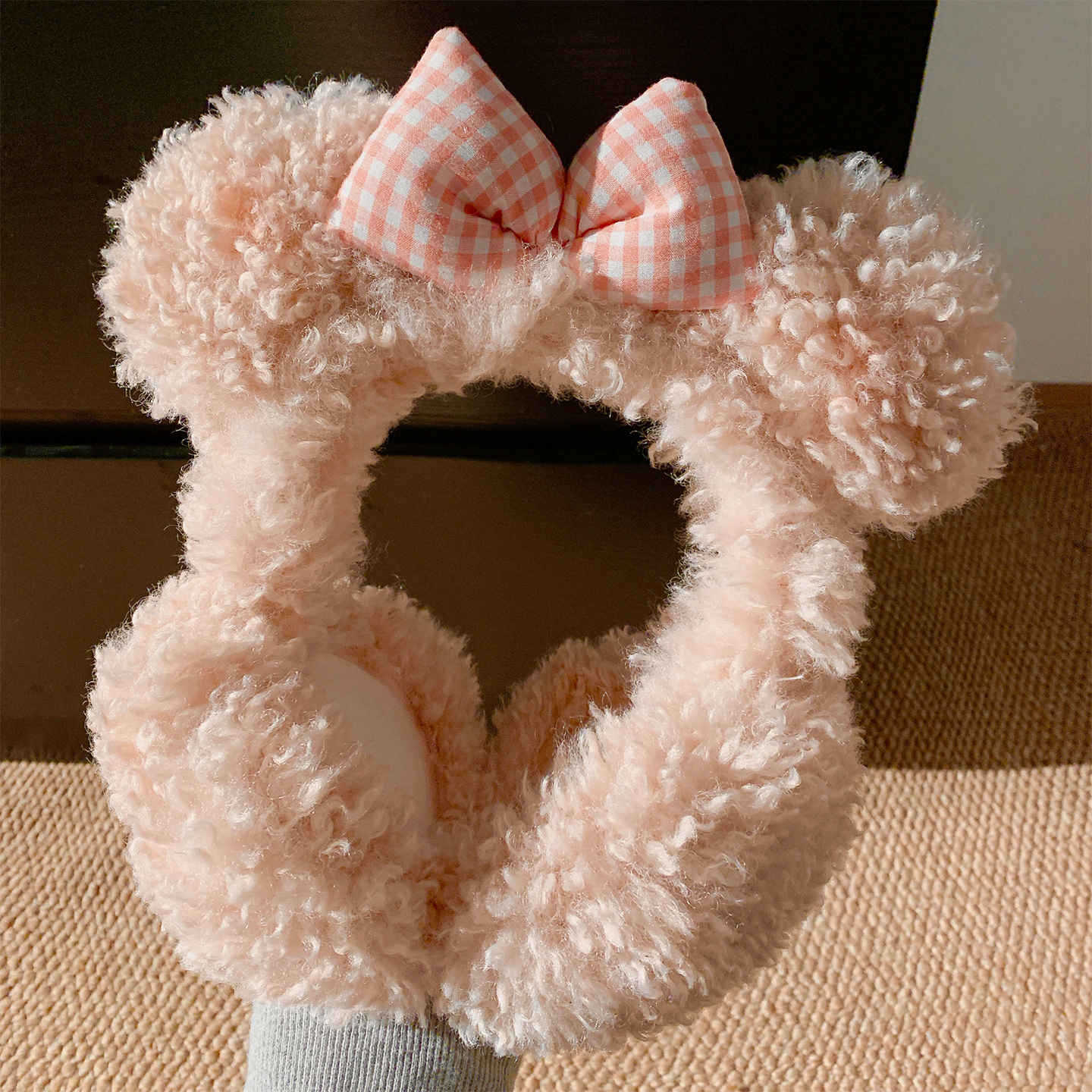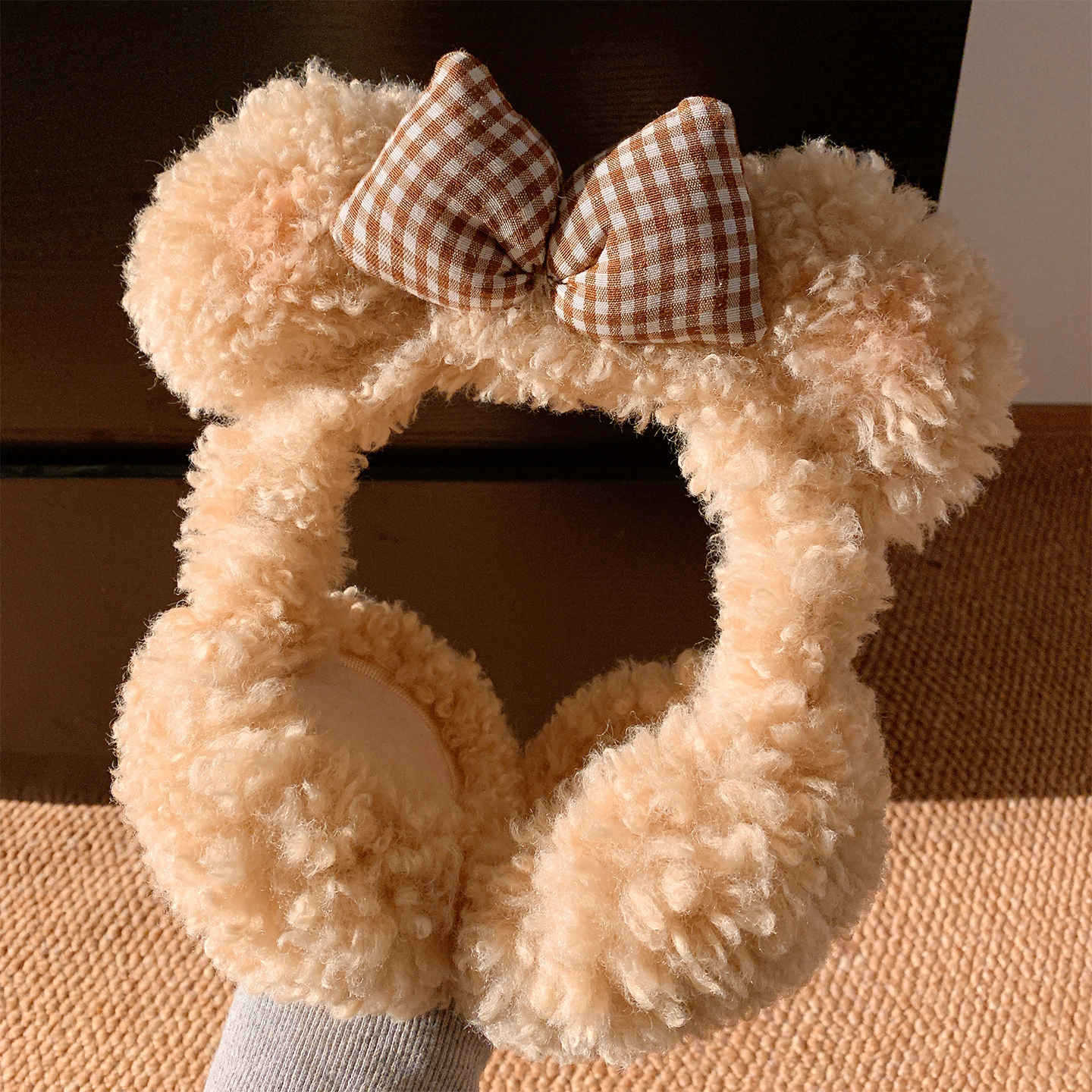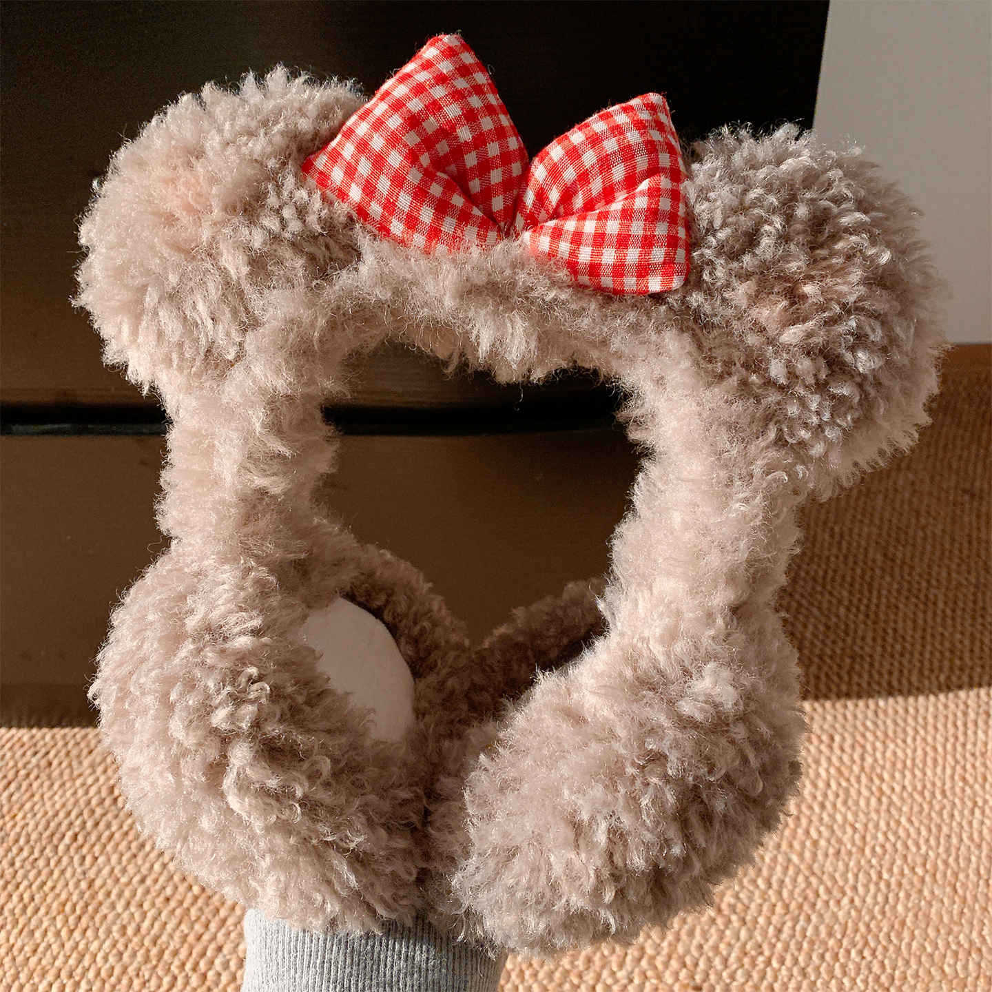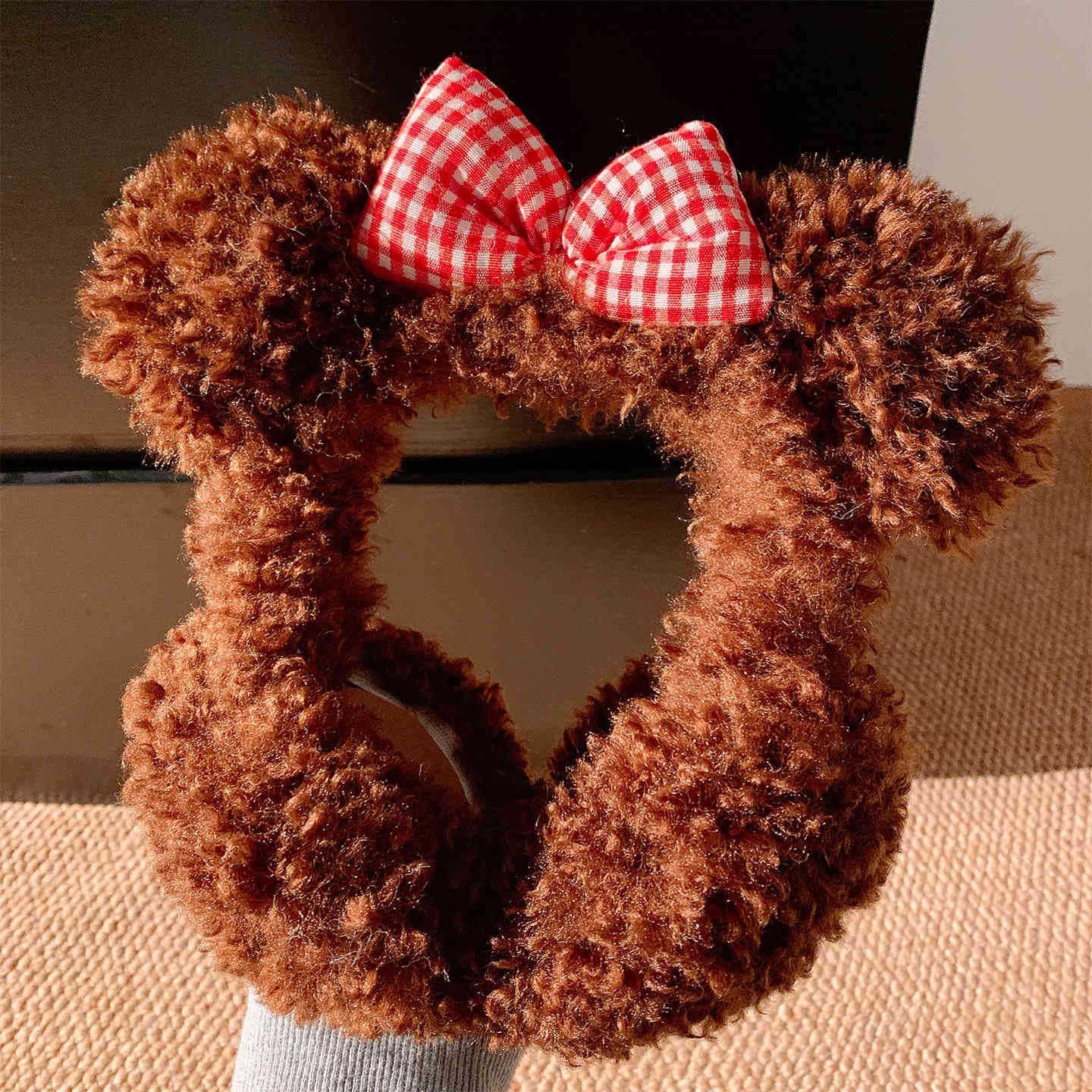 子羊の毛のような可愛らしいリボン付きクマ耳のふわふわ耳当て(女性用) 冬用耳当て 防寒保温 耳暖耳カバーイヤーマフ