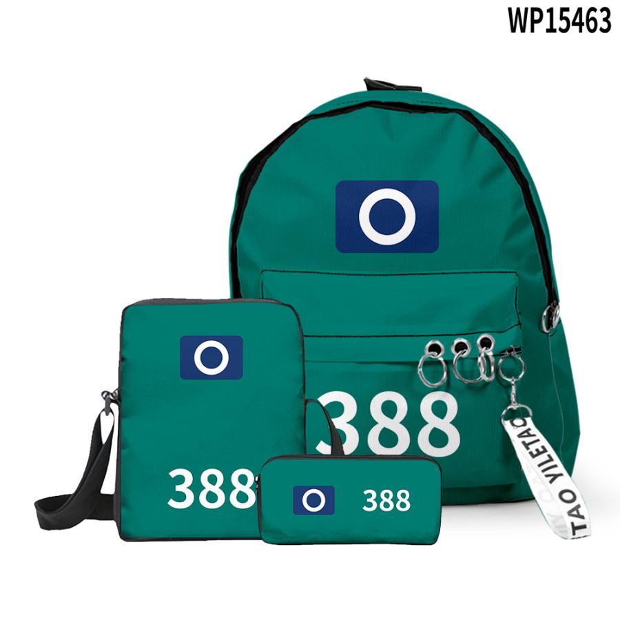 「新品入荷*即納」イカゲーム Squid Game 3点セット バックパック グッズ リュック・ショルダーバッグ・筆箱 大容量 キッズ 学生 通学