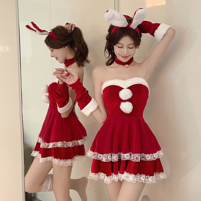 【3日以内に出荷】 クリスマスコスプレ クリスマス 衣装の女COSバニーガールのセクシーワンピース 情趣下着