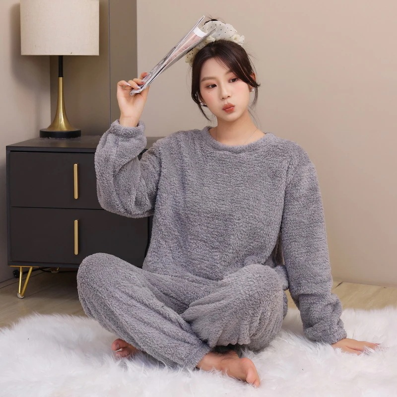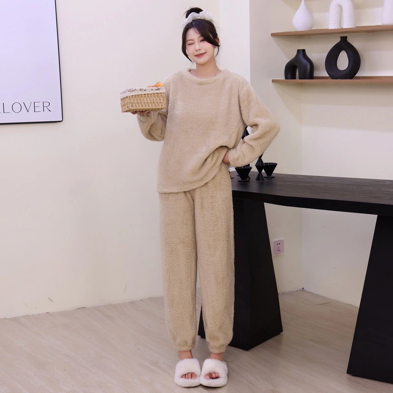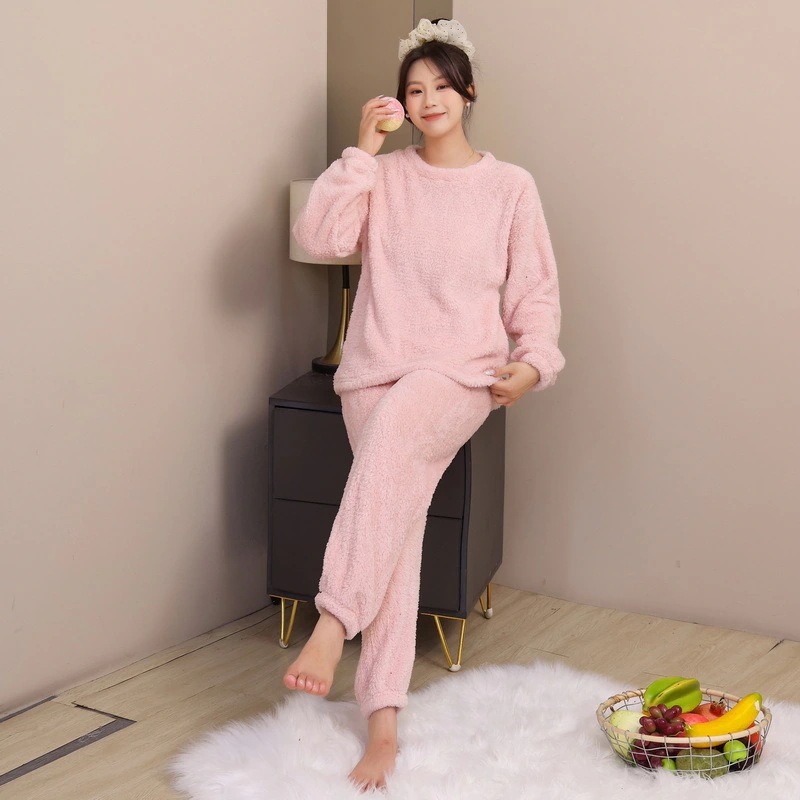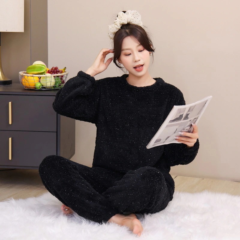 パジャマ女性2025秋冬新作長袖長ズボン裏地付き厚手光沢コーラルフリースアウターとしても着用可能ホームウェアセット