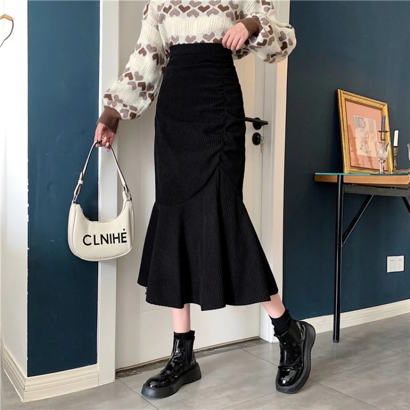 マーメイドスカート レディース フレアスカート ラッフルスカート ハイウェスト ロングスカー