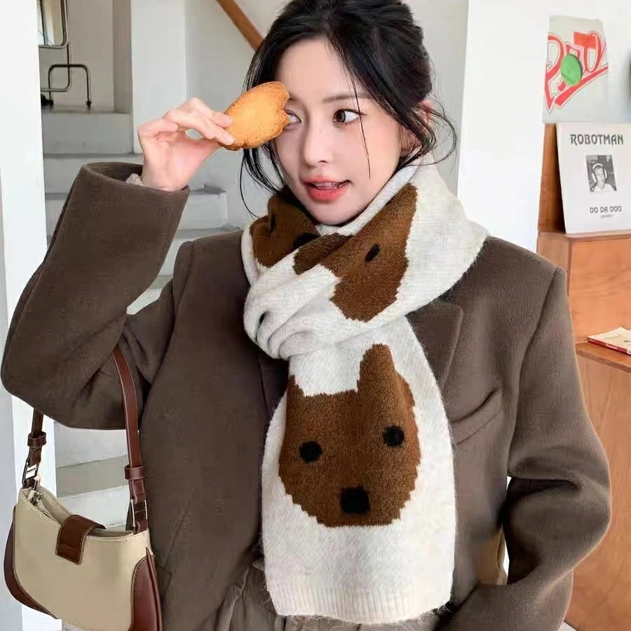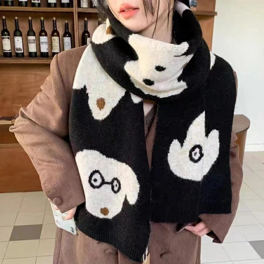 マフラーdog柄ネイティブ柄レディースメンズ小顔ギフトプレゼントおしゃれ可愛い小物防寒ニットストール高校生