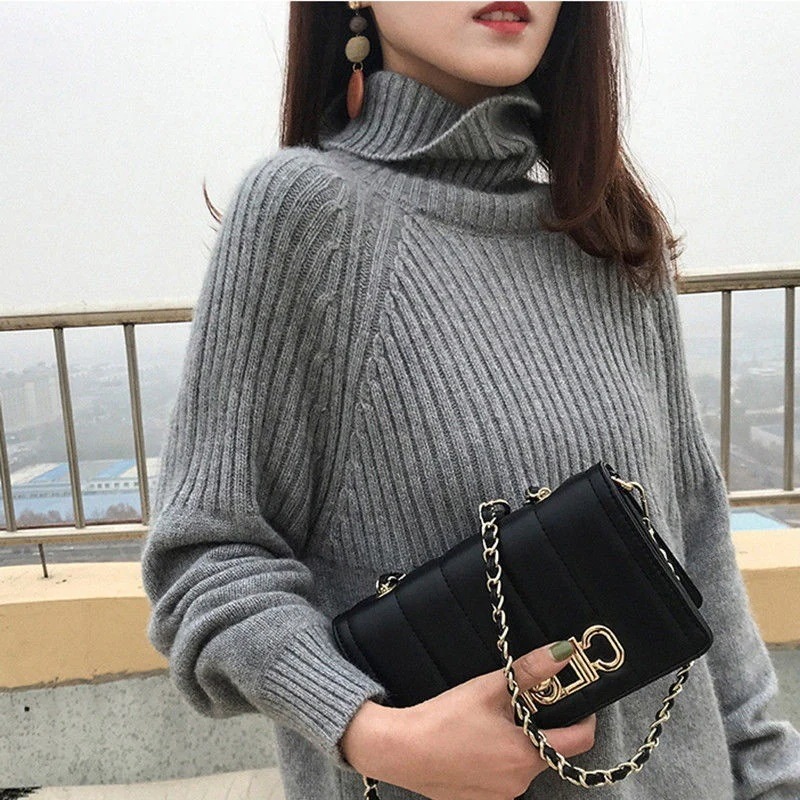 新色追加韓国の人気発商品厚手のックニット服セーター女性ルーズレイジーウーセーターハイカラー大サイズ無地厚手シャツ