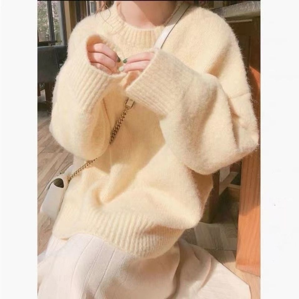 韓国人気商品 厚手 ニット服 セーター 女性 アウター ルーズ セーター 大サイズ カシミヤタッチ 無地 厚手シャツ 韓国ファッション レディース ファッション ベーシックニット ロンT