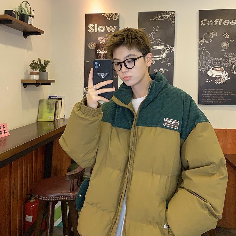 立ち襟 港風 ゆったり 撞色 パッチワーク コーデュロイ ウォーム コットンジャケット カジュアル 百掛け ジャケット