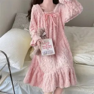 ネグリジェ 着ぐるみパジャマ裏起毛厚手 コーリース パジャマ レディース ウォーム ホームウェア 補正下着