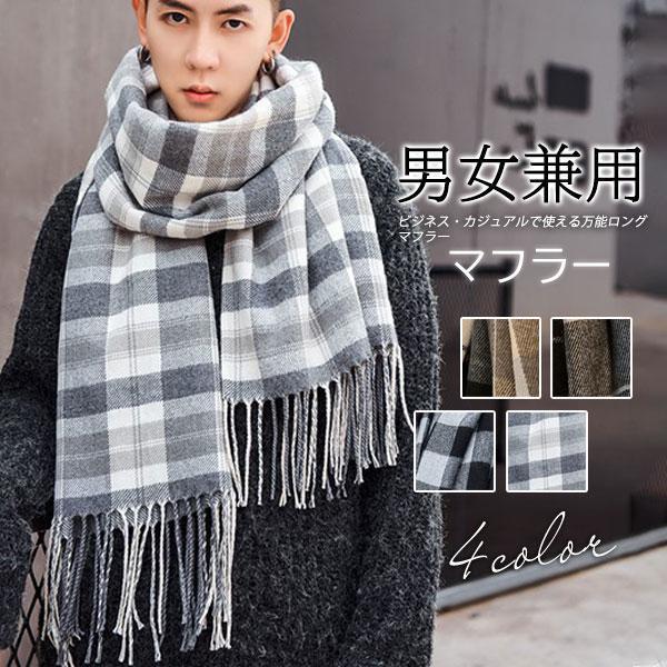 デイリーマフラー マフラー メンズ ロング 大判 保温 ロングマフラー スカーフ ビジネス カジュアル ペア チェック柄 フリンジ ファッション小物 ストール