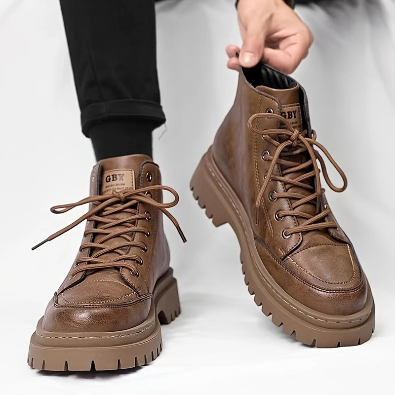 マーチンブーツ 秋冬用ハイカットレザーシューズ アウトドアワークショートブーツ カジュアルシューズ