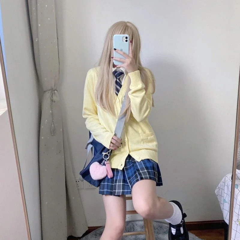 【3日出荷】JK 制服ニットカーディガン 学生用ベーシックモデル レディース外搭アウター制服 カーディガン