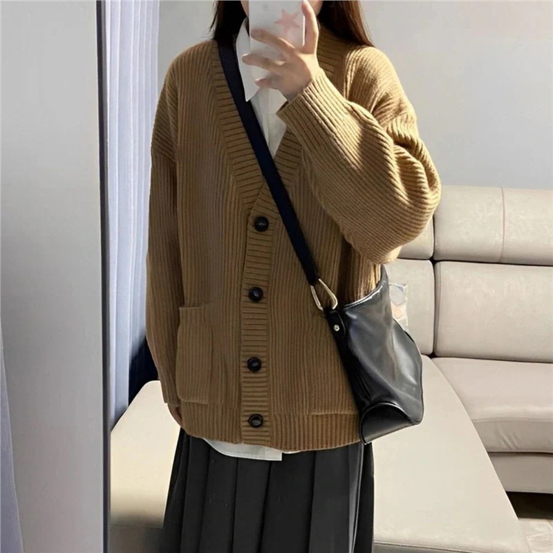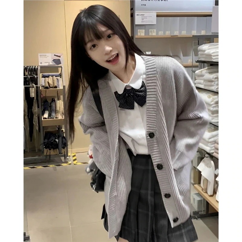 【3日出荷】冬季 JK 制服グレーニットカーディガン アカデミア風 V ネックニット セクシールーズレディースアウター制服 カーディガン