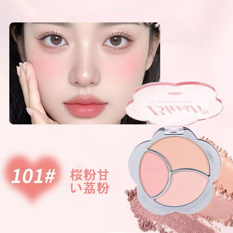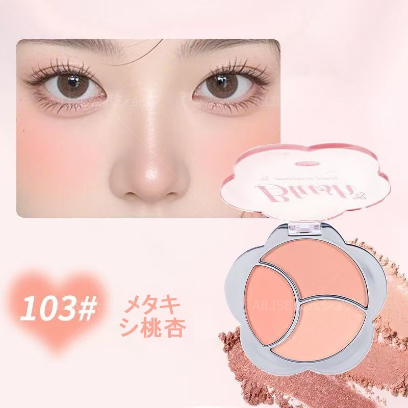 BIYA【公式正規品】チークパレット/トリプルインセット/マット/ハリ/ピュア/素肌白/デイリー通勤/韓国系チーク