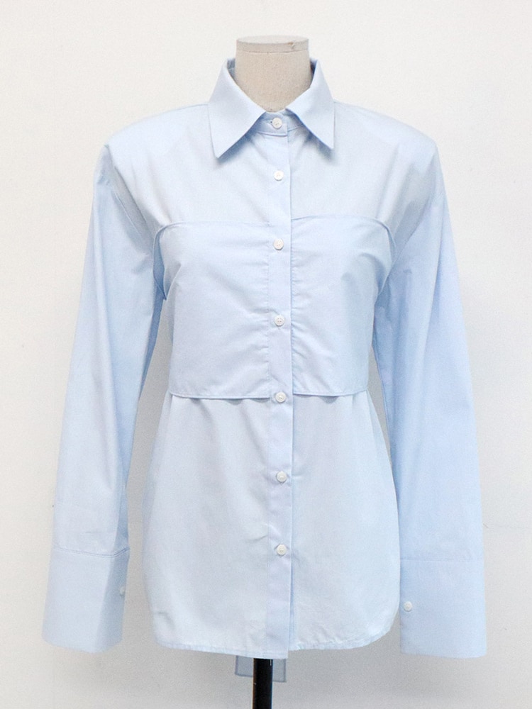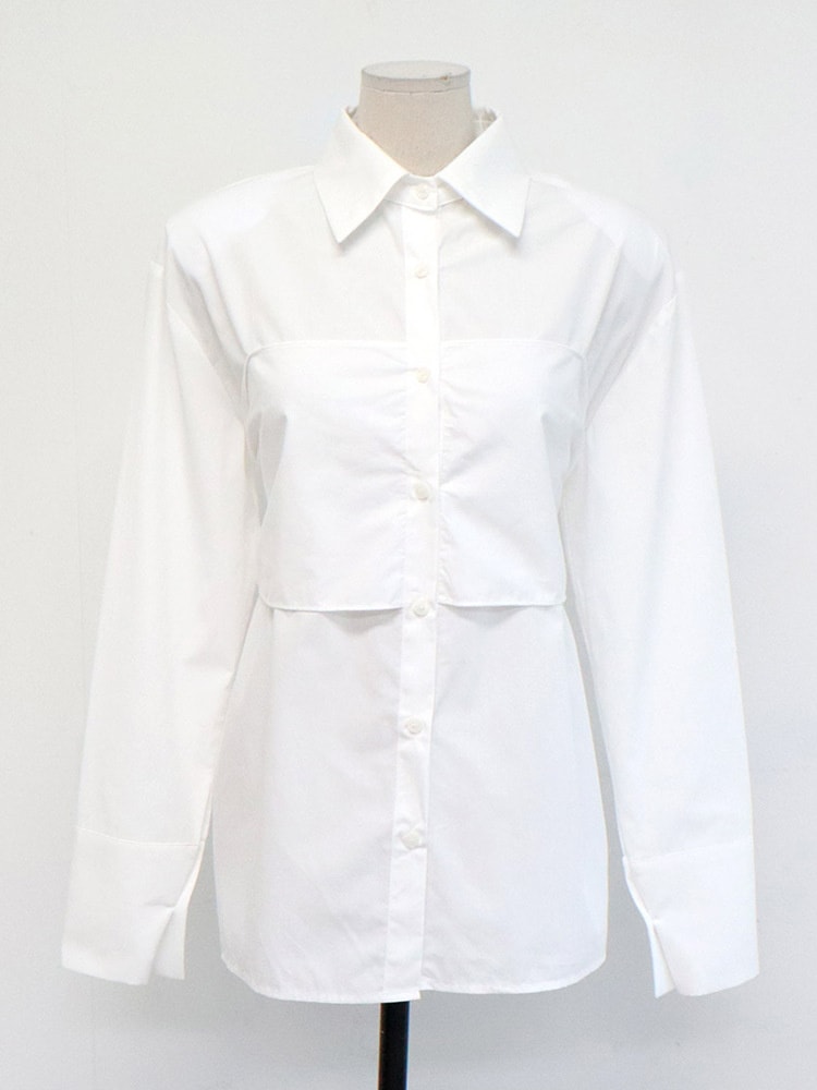 激安セール リボン付きバックブラウス ロングスリーブ シンプル無地 ルーズカラー 丈あり