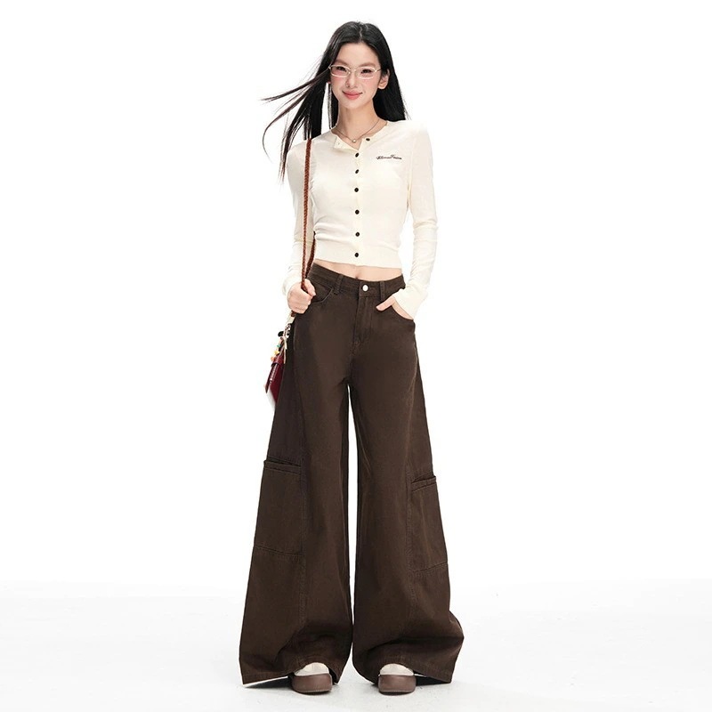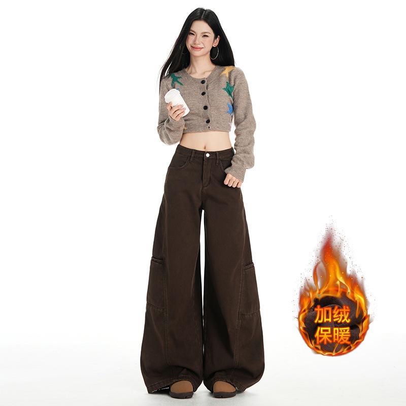 ワイドパンツ 裏起毛 2025 秋冬新作 レディース 裏起毛アメリカン辣妹ワークデニムハイウエストルーズワイドレッグ 万能マッチカジュアルロングパンツ 裏起毛パンツ ワイドパンツ レディース