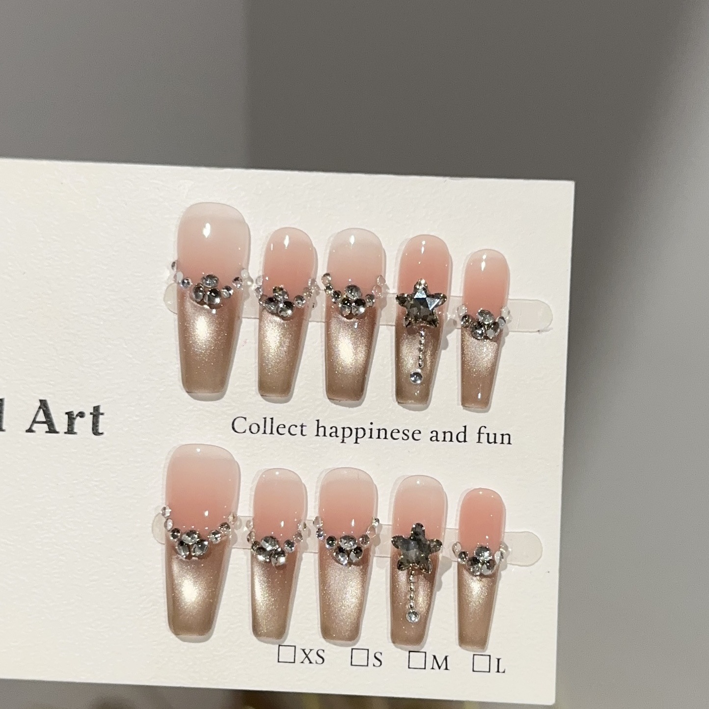 純手工ネイルチップ ハイクラス秋冬金キャットアイロングタイプ ダイヤ積みパール光フェイクネイル
