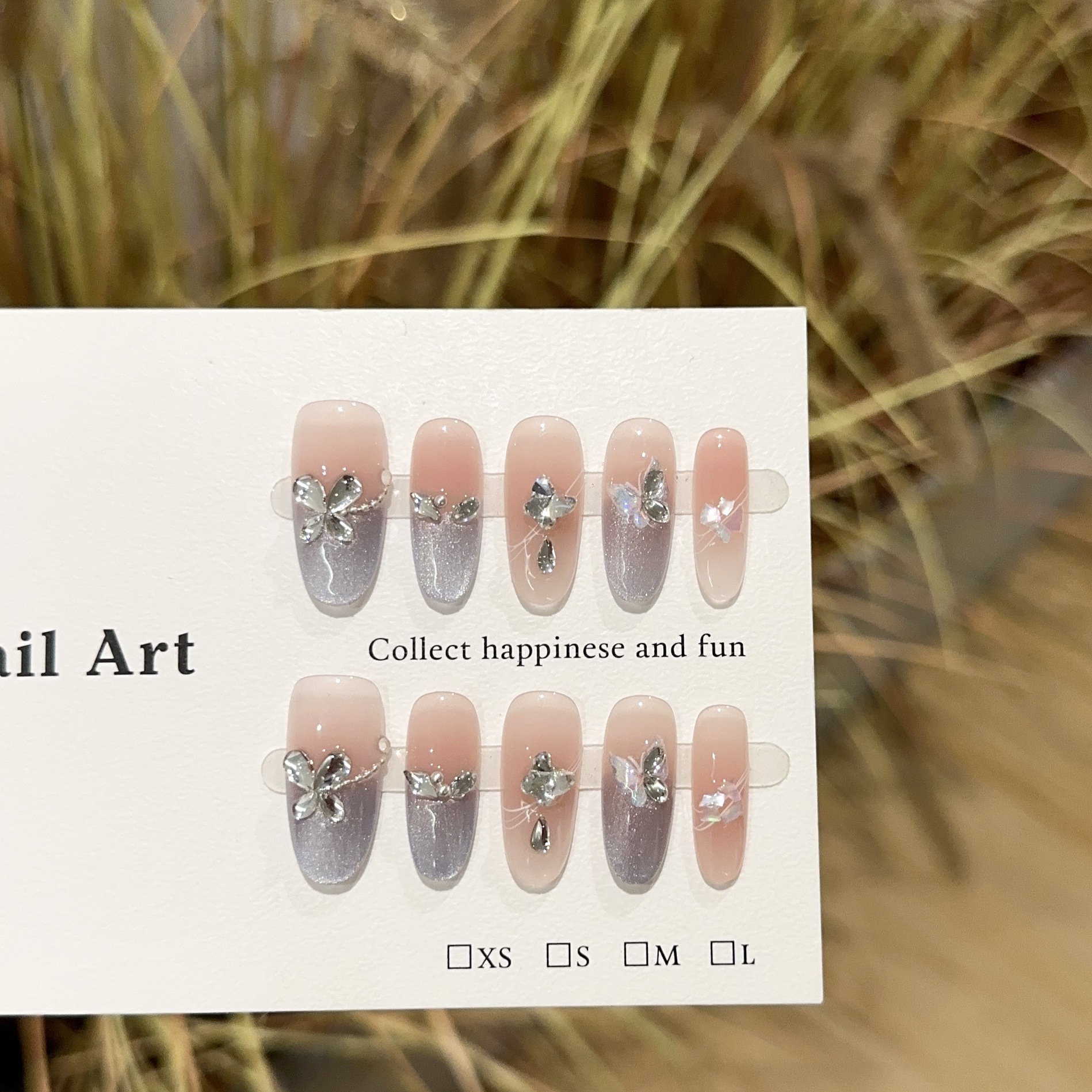 純手工ネイルチップ ハイクラス薄紫キャットアイネイル リミテッドラグジュアリー肌白く見せるダイヤ拼りフェイクネイル完成品