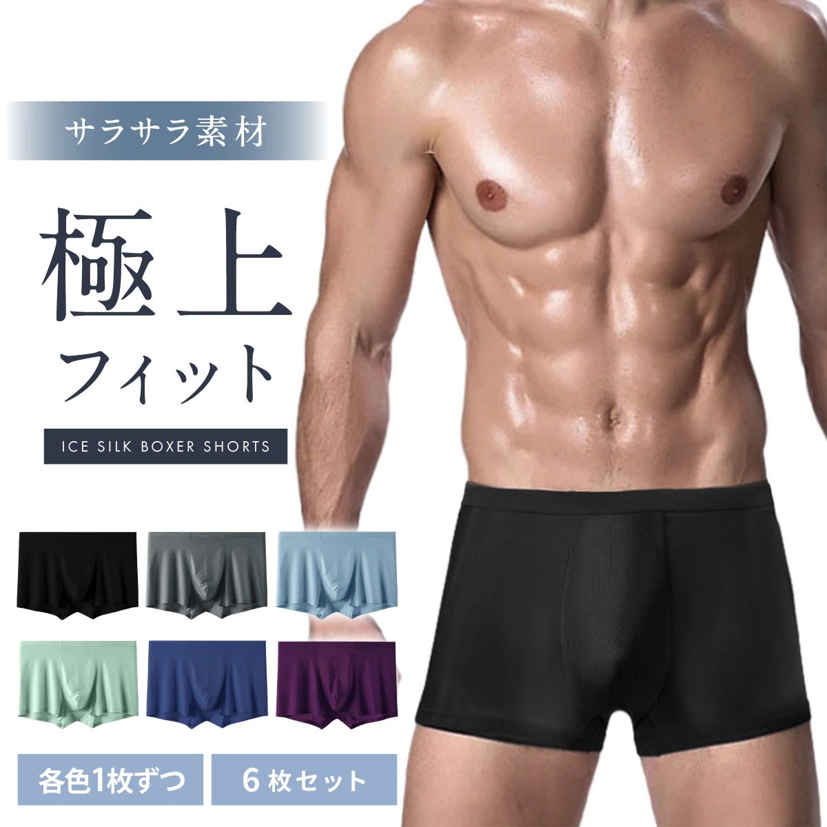 ボクサーパンツ メンズ 下着 肌着 6枚セット シームレス ボクサーブリーフ アンダーウェア 接触冷感 ひんやり 通気性 立体構造 3Dデザイン 無地 パンツ 男性 インナー 男性用 冷感 セット 6